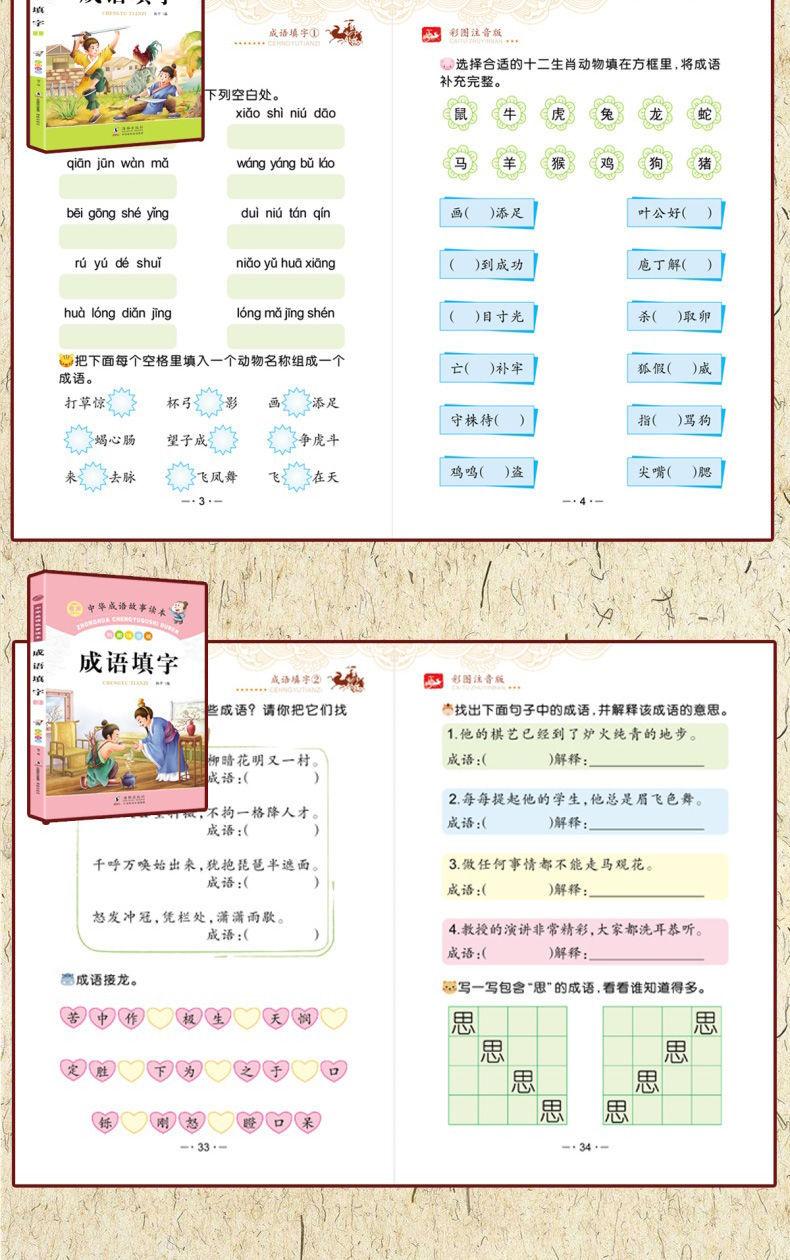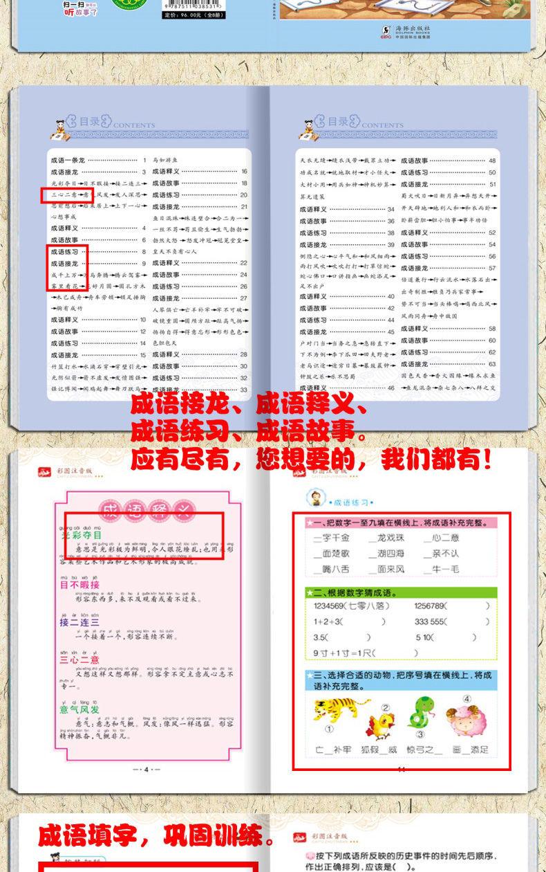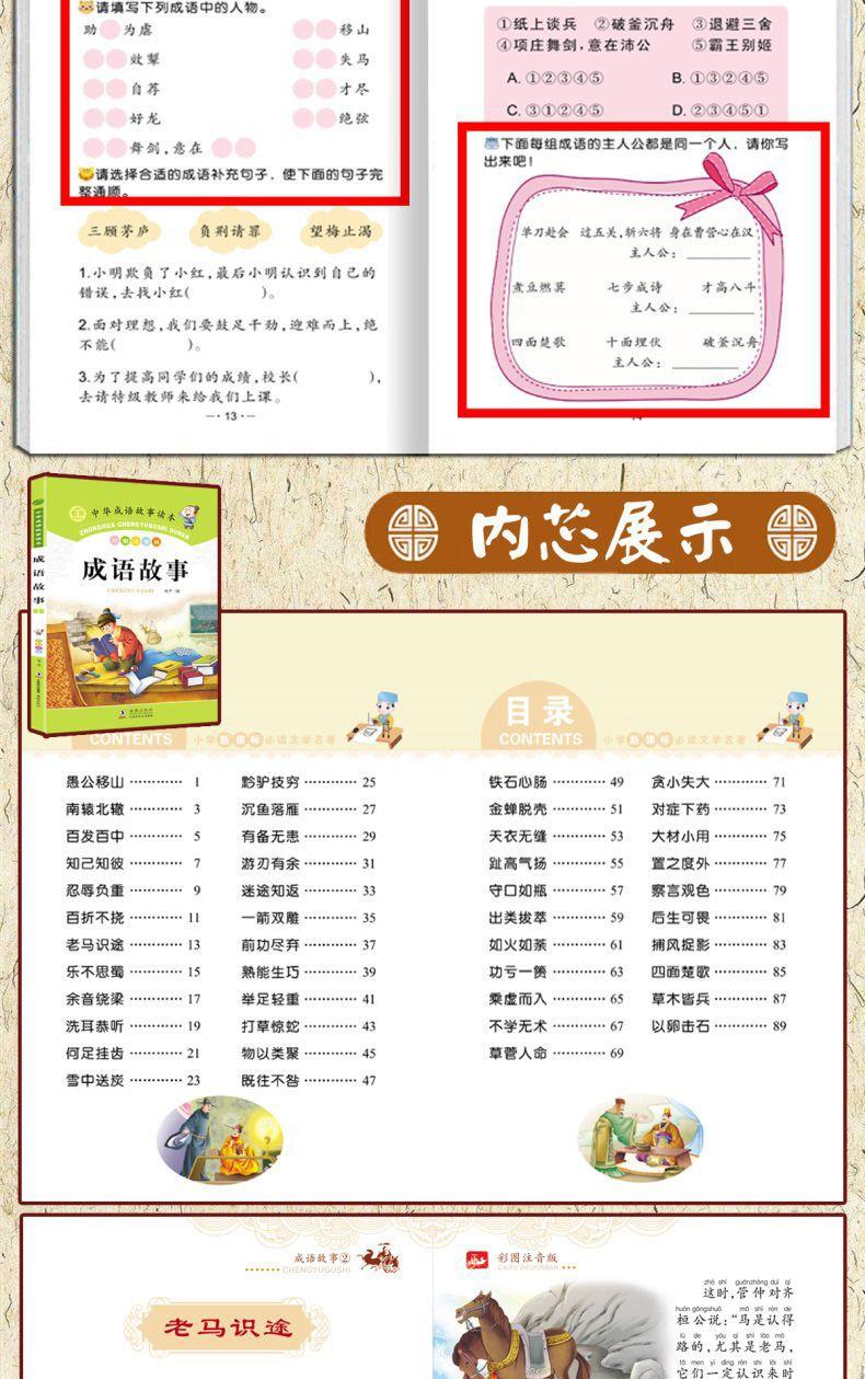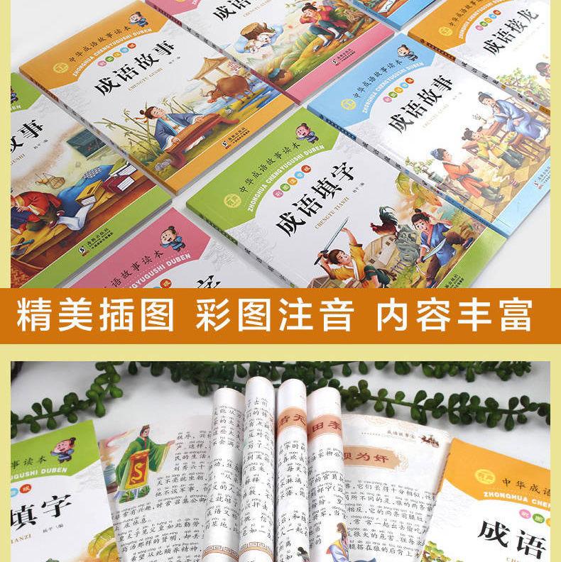 Una colección completa de modismos e historias, edición fonética, libros ilustrados de lectura extracurricular para estudiantes de primaria, grado 1, grado 2 y grado 3, libros infantiles de Jielong