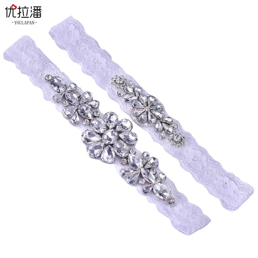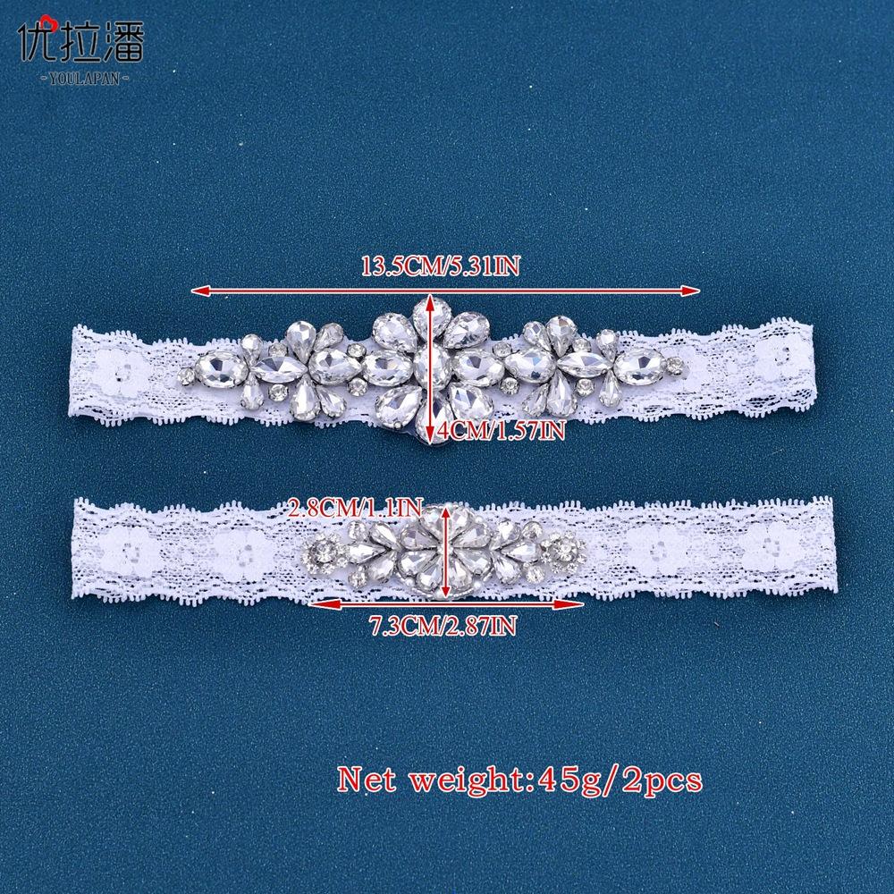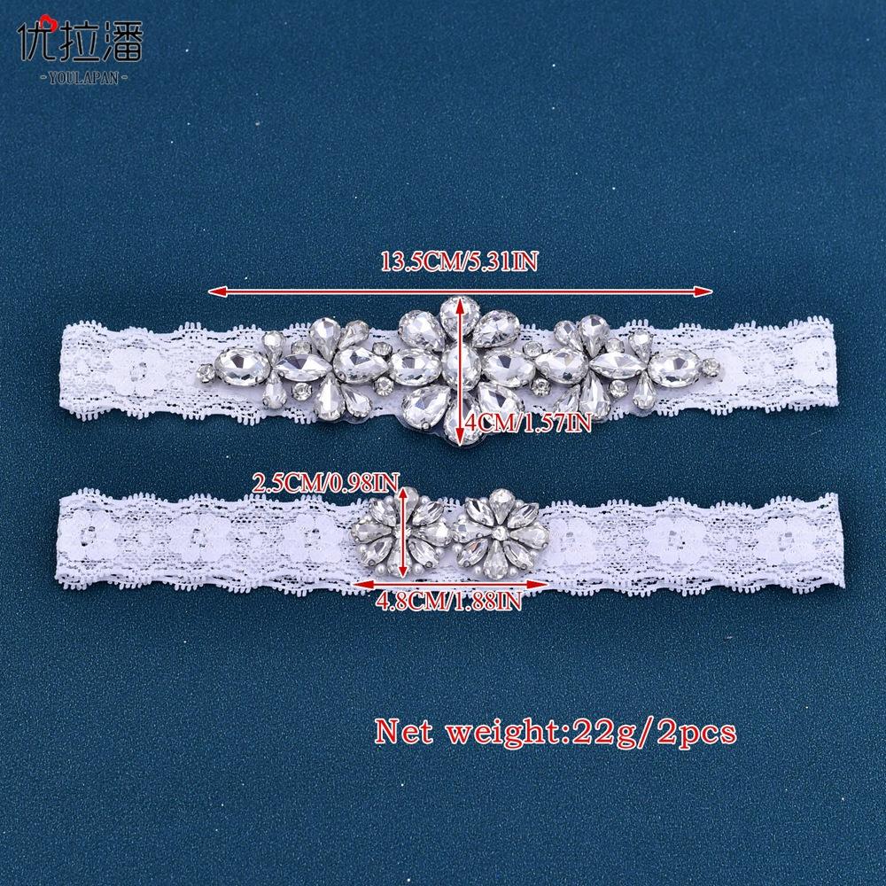 Youlapan - Banda de encaje para pierna, disponible en stock, para novia, con anilla elástica para pierna, calcetines con tirantes y diamantes de imitación, STS45