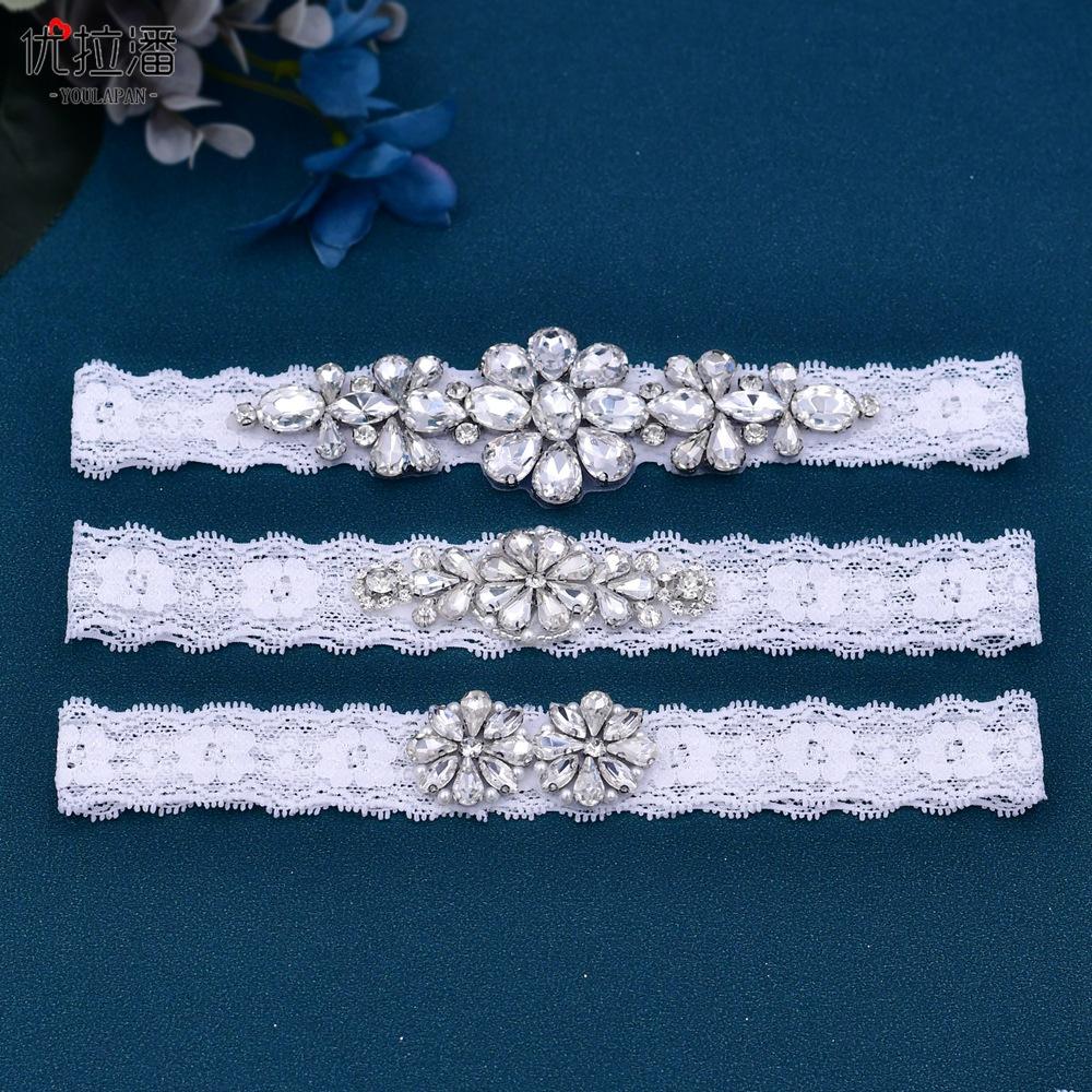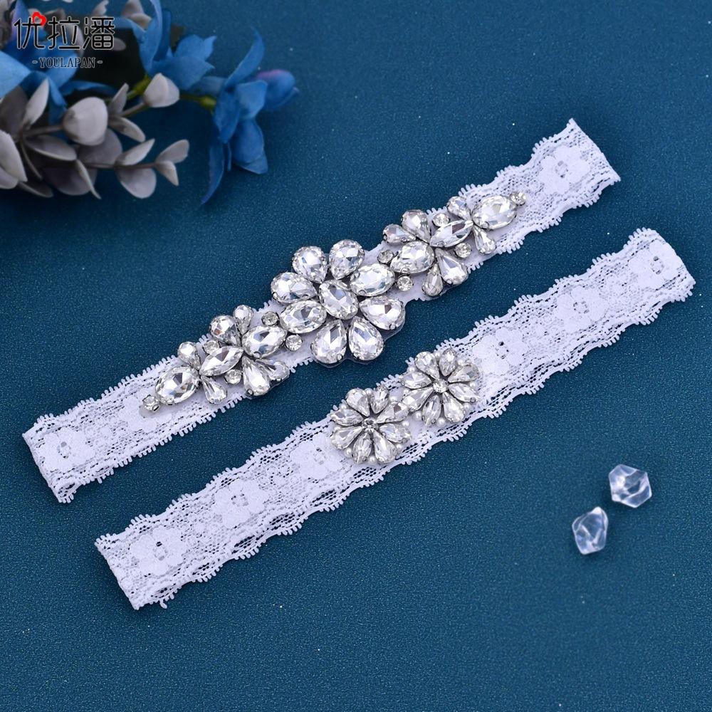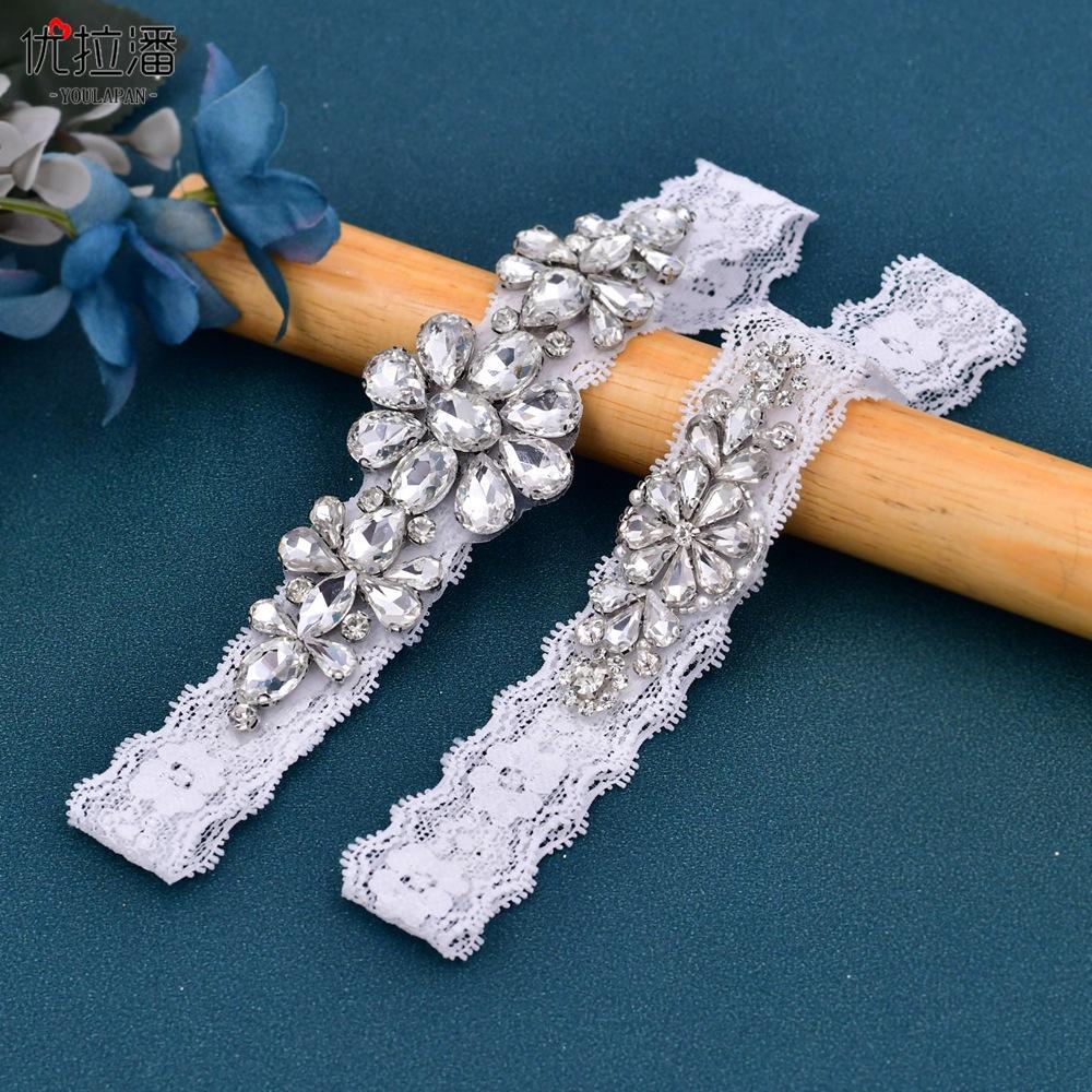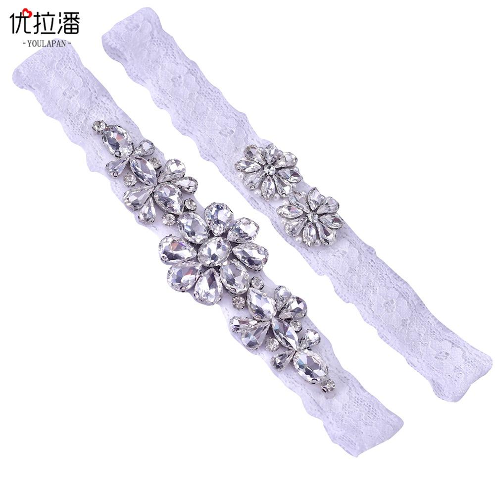 Youlapan - Banda de encaje para pierna, disponible en stock, para novia, con anilla elástica para pierna, calcetines con tirantes y diamantes de imitación, STS45