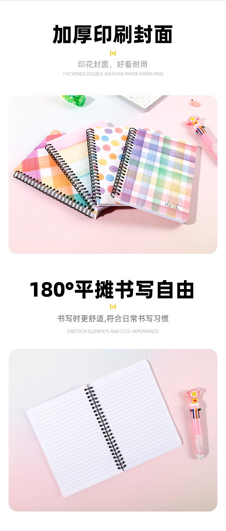 Cuaderno de Hojas Sueltas de Espiral Plana de Aspecto Elegante y Lindo para Estudiantes de Primaria, Cuaderno Grueso Impreso a Color