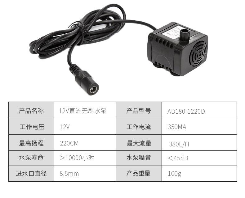Bomba de agua sin escobillas de 12 V CC, bomba de agua solar, microbomba de agua CC, bomba de agua para fuente