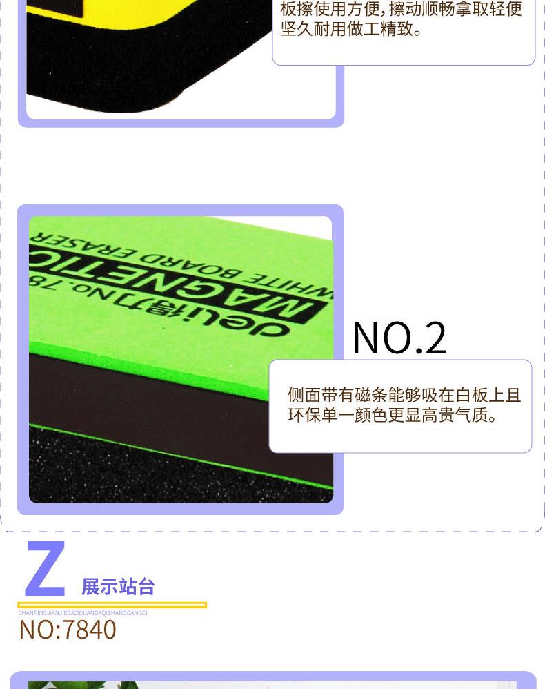 Borrador de pizarra blanca Deli 7840 con adsorción magnética, borrador de tiza, borrador de pizarra escolar, suministros de oficina al por mayor
