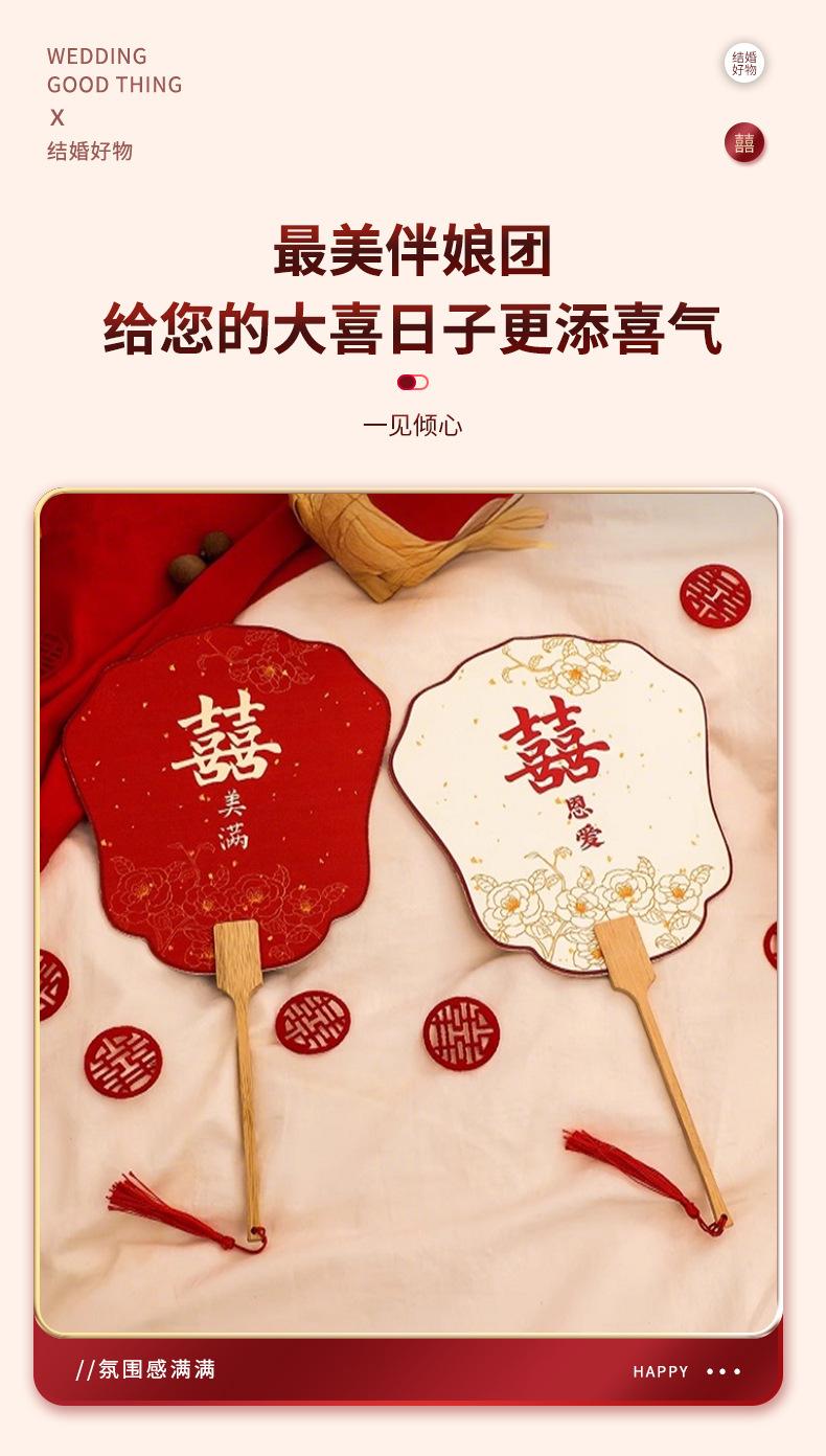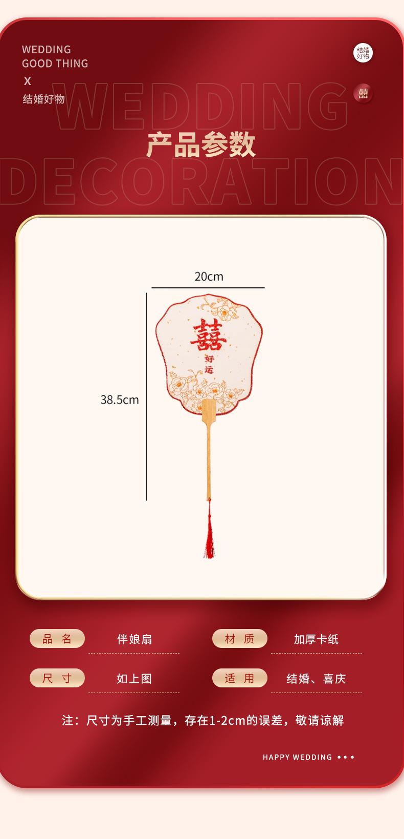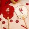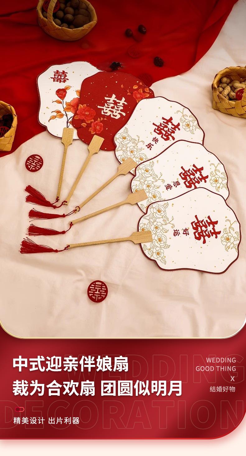 Abanico de boda para novia y hermanas damas de honor Abanico grupal para boda Accesorios de fotografía de boda china Abanico rojo de doble cara