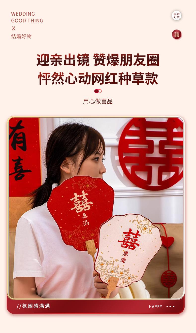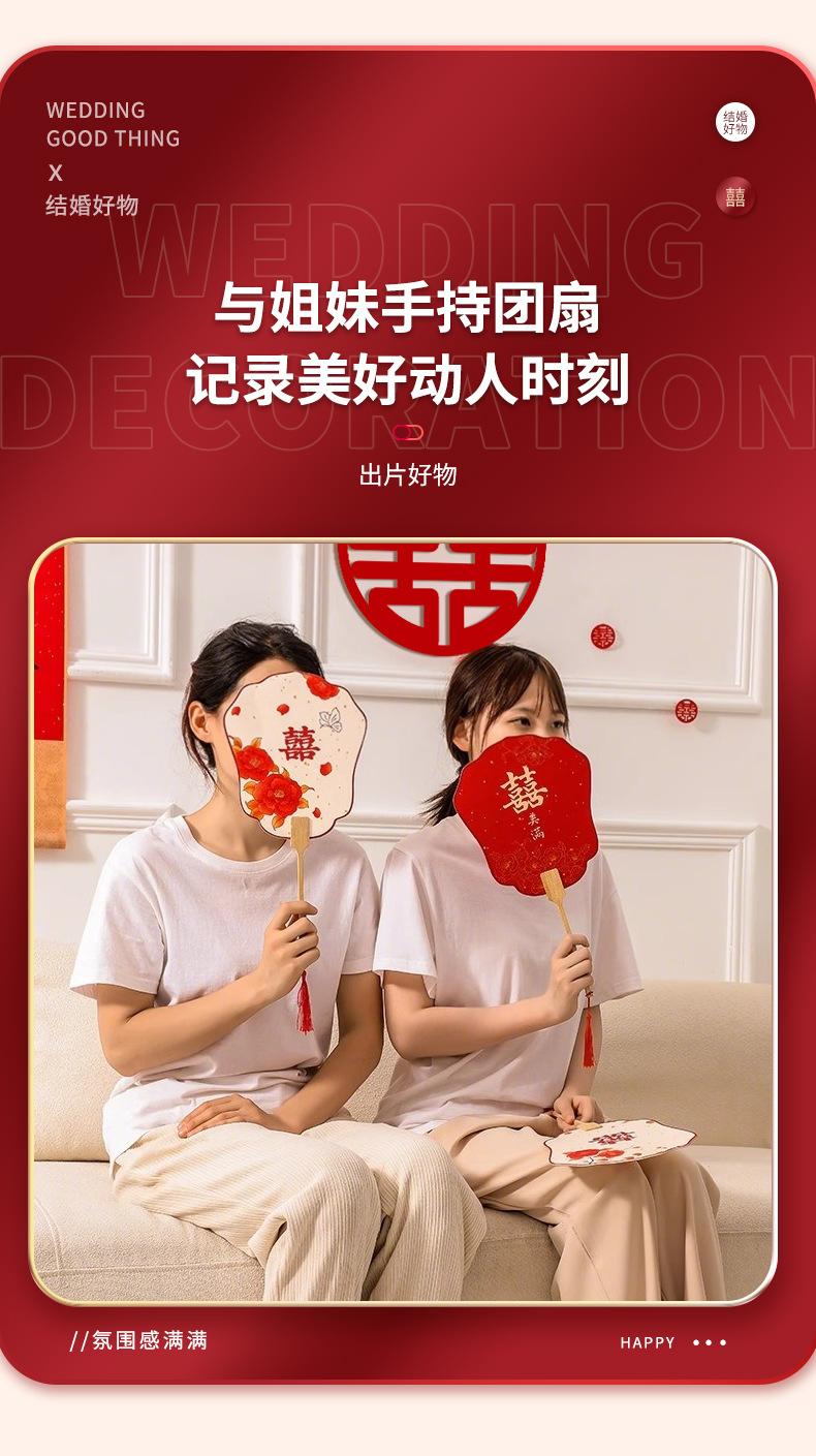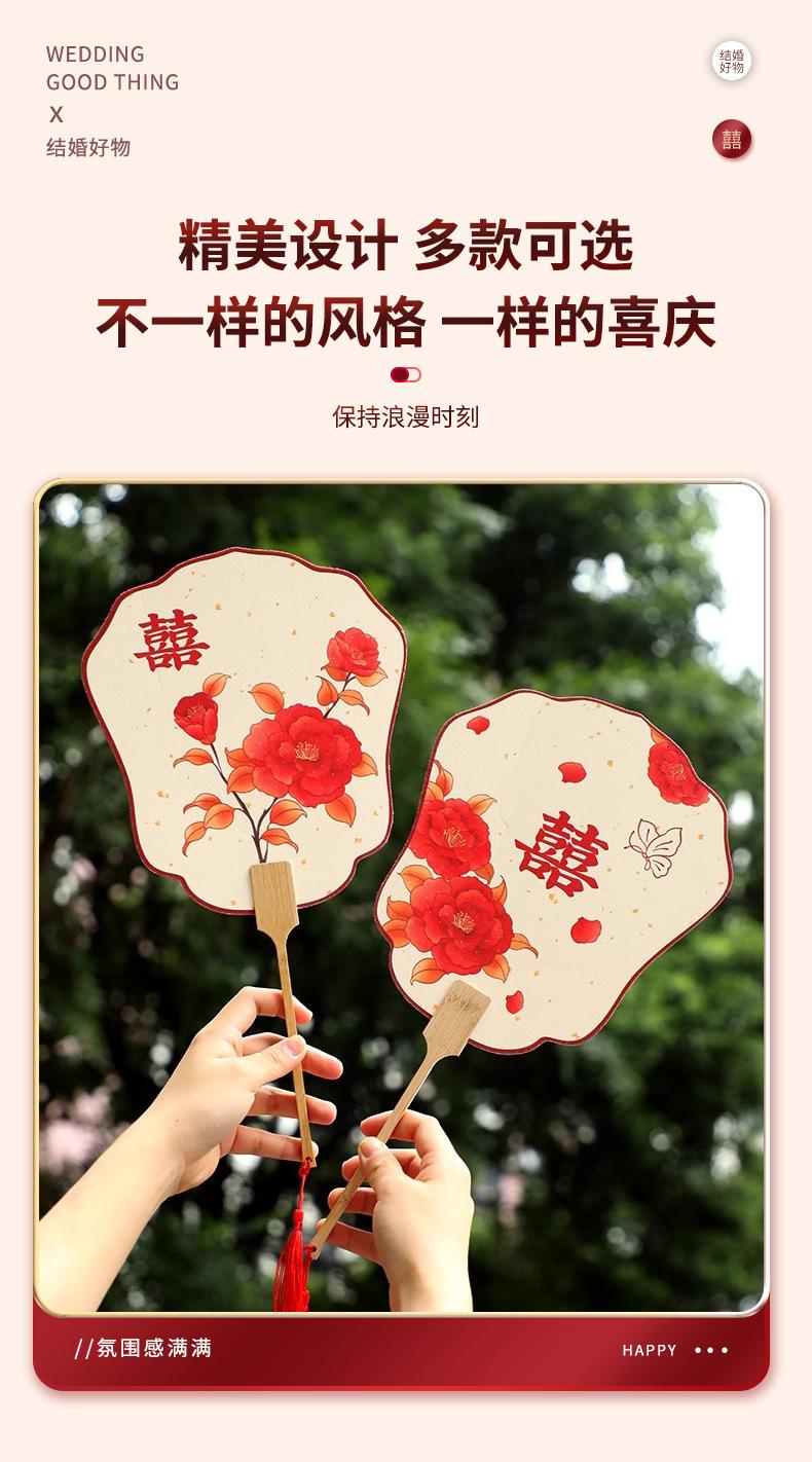 Abanico de boda para novia y hermanas damas de honor Abanico grupal para boda Accesorios de fotografía de boda china Abanico rojo de doble cara