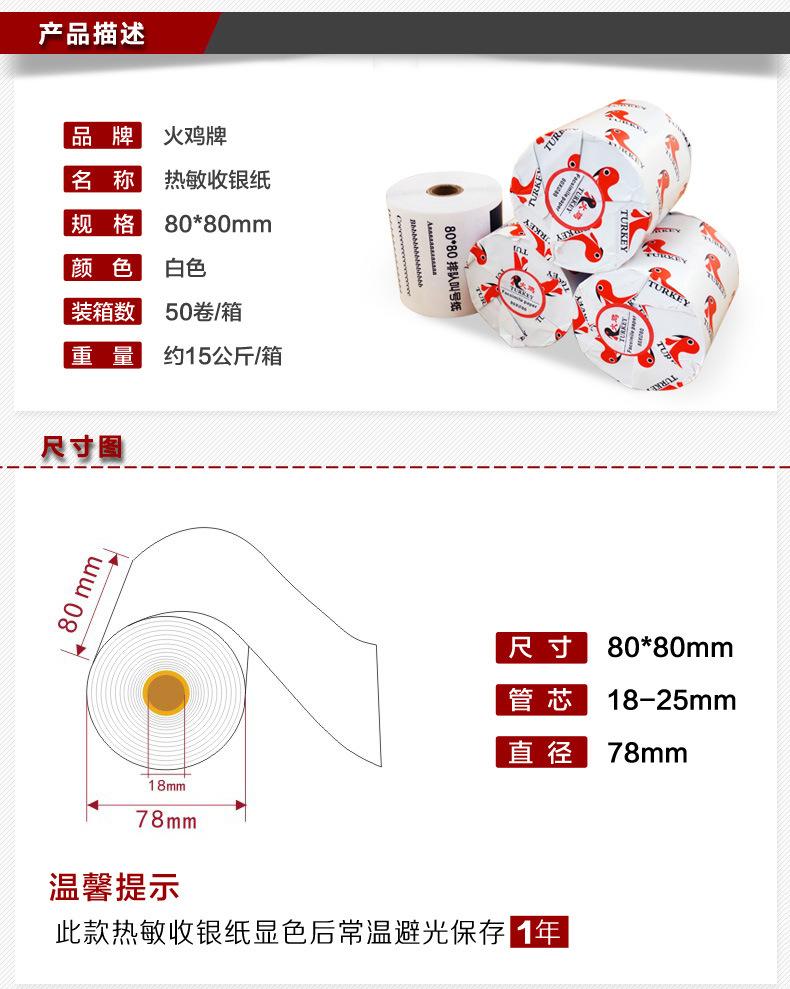 Papel Térmico para Cajero 80*80 Etiqueta Adhesiva Catering para Llevar Supermercado Papel para Recibo de Película Papel para Impresión Venta al por Mayor