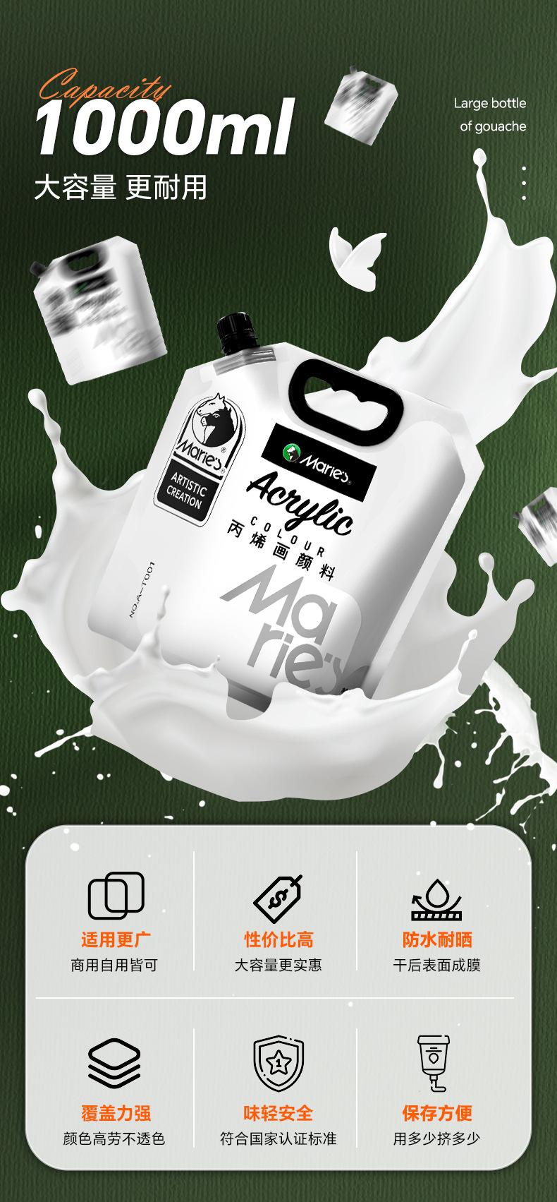 | Pintura acrílica Marley, bolsa de 1 l, color blanco, gran capacidad, para pared, especial, barril grande, resistente al agua, no se decolora, arte, venta al por mayor |