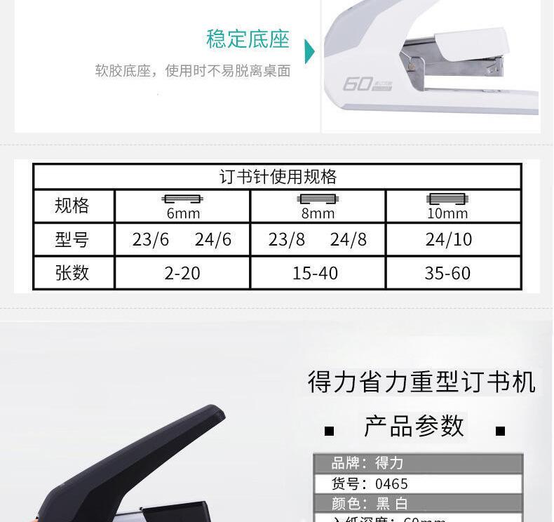 Deli 0465 labor-saving Stapler (black), Deli 0465 labor-saving Stapler (white)