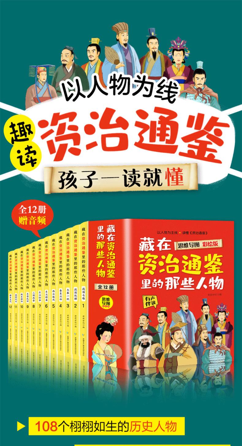 Un conjunto completo de 12 libros de esos personajes ocultos en Zizhi Tongjian, mapa mental, versión pintada, libros infantiles al por mayor