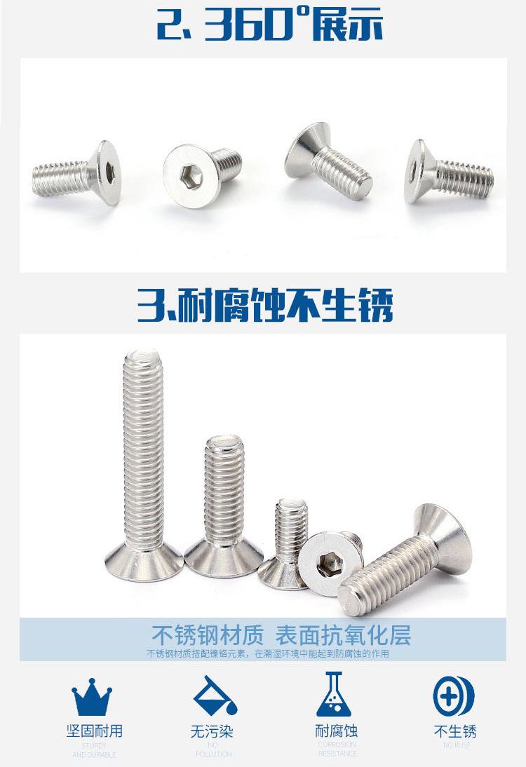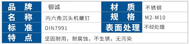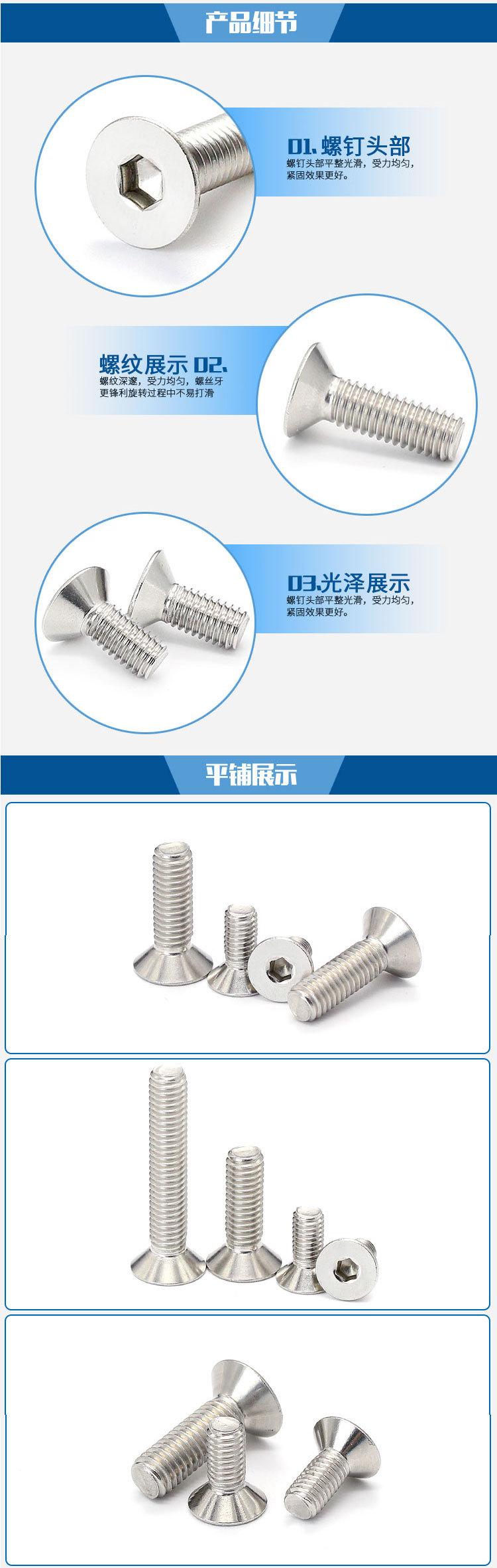 Tornillos de cabeza plana de acero inoxidable 304 m4m5m6, tornillos de cabeza avellanada con hexágono interior DIN7991, tornillos de cabeza plana con hexágono interior