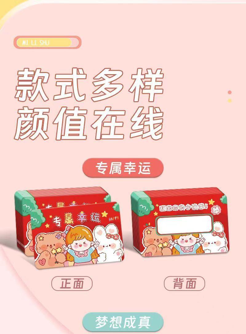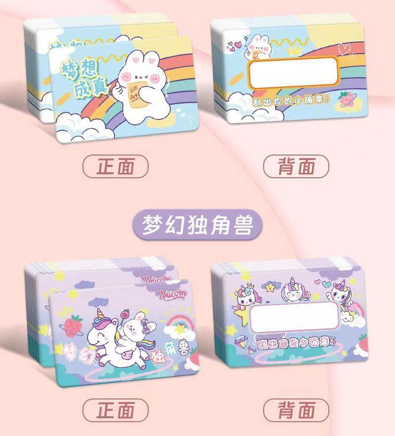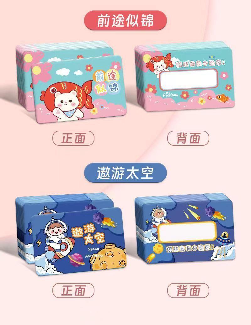 Venta al por mayor de tarjetas rasca y gana creativas, recompensas para estudiantes de escuela primaria, tarjetas rasca y gana de lotería hechas a mano, pegatinas con revestimiento de la suerte.