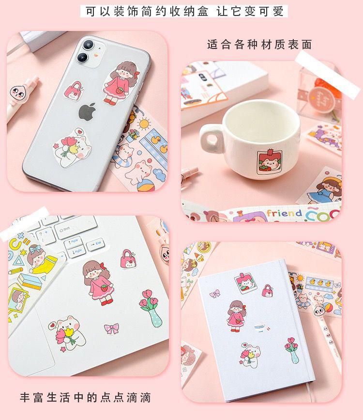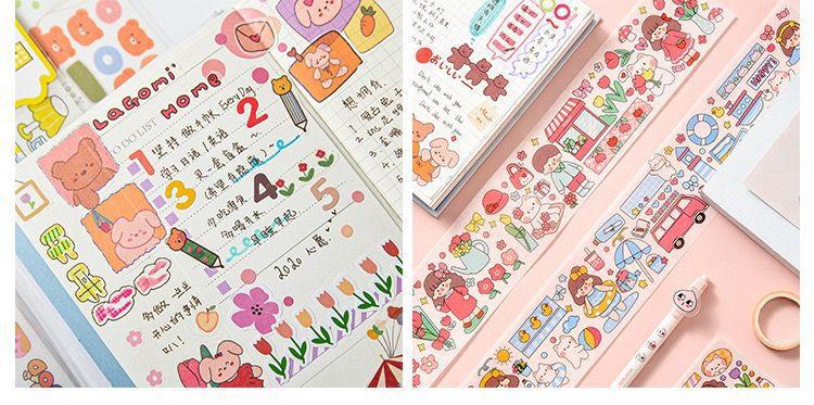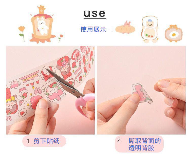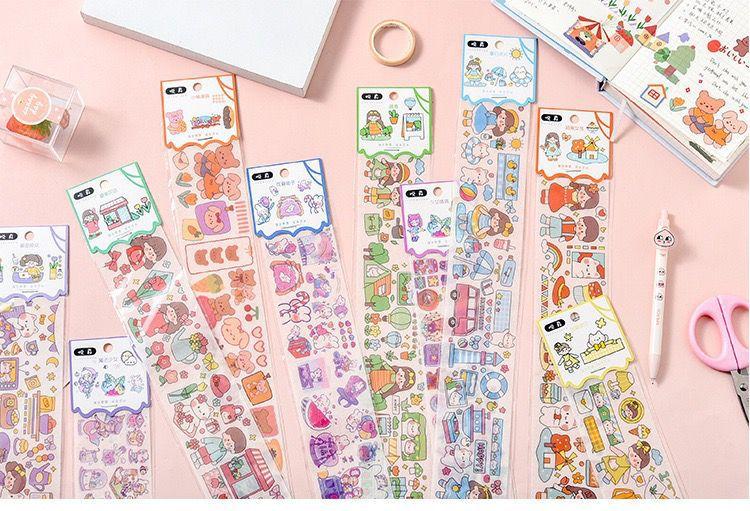 Serie de cuentas de mano para niña, tiras largas de embalaje y pegatinas de cinta de papel, linda decoración para diario, pegatinas caseras de bricolaje
