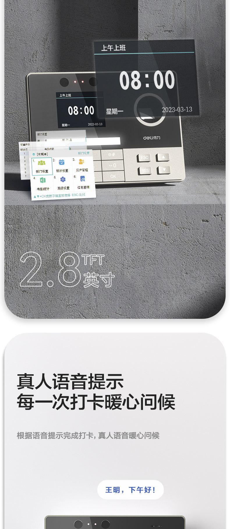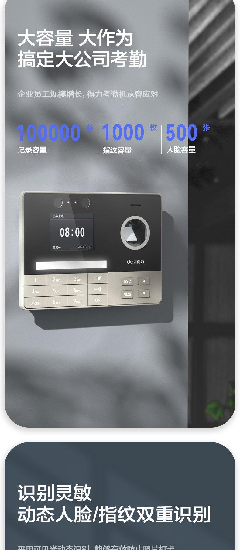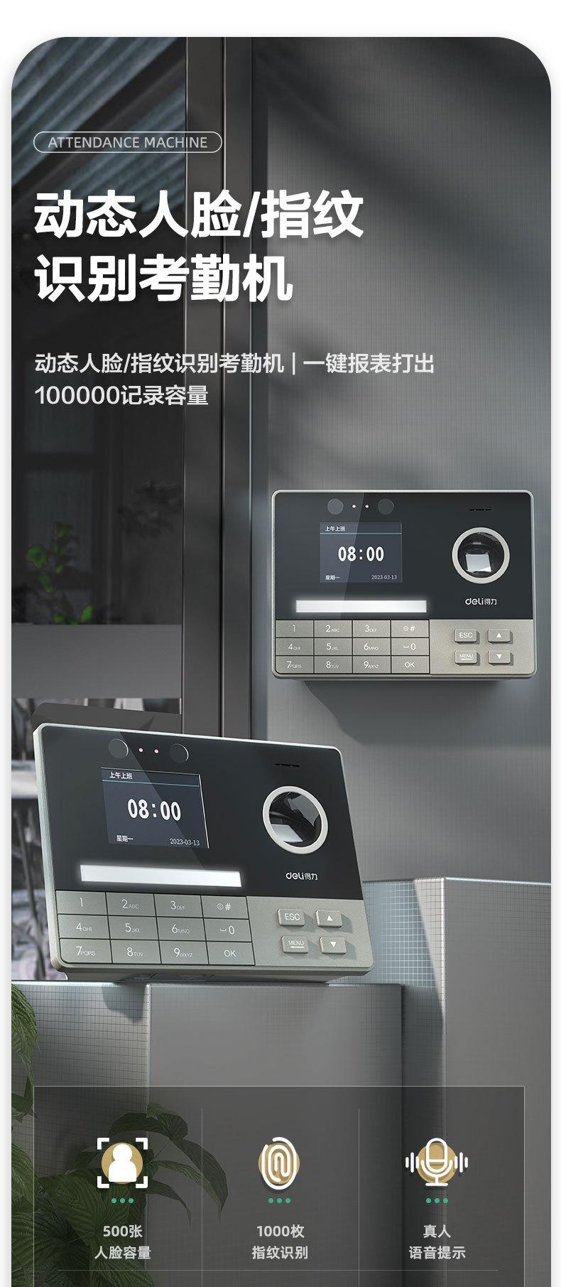 Deli 3760 Face Recognition Attendance Machine (Silver Grey) (set)
