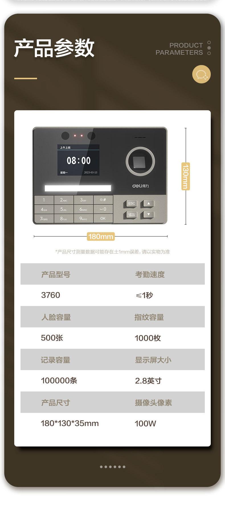 Máquina de asistencia con reconocimiento facial Deli 3760, máquina de tarjetas de viaje para personal de la empresa, cepillo facial inteligente, registro con huella dactilar