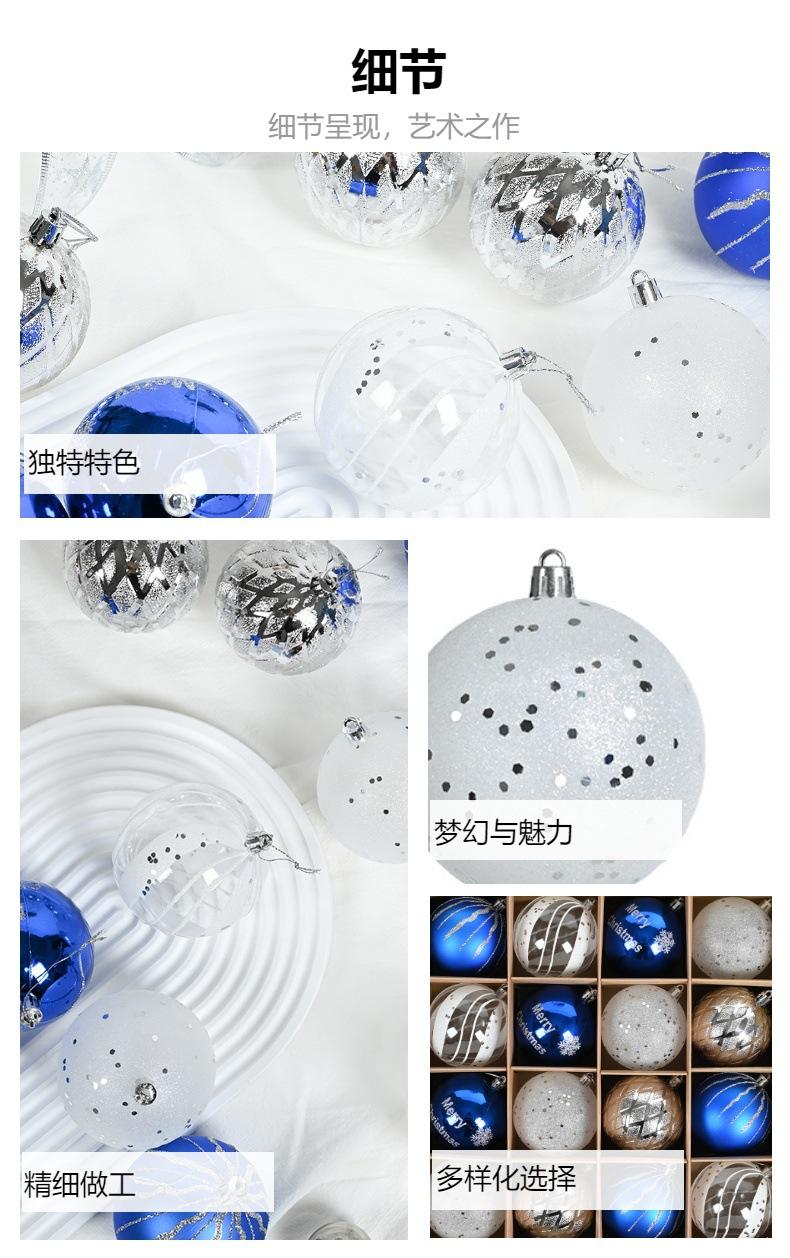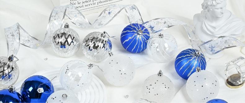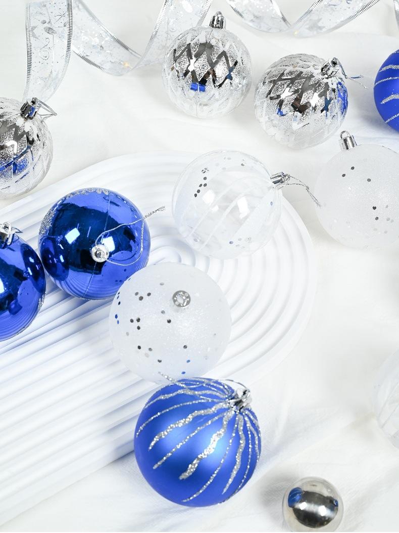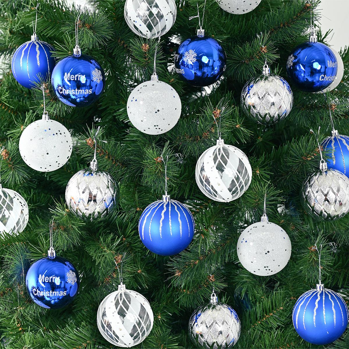 Adornos navideños de 8 cm, bola de plástico azul, plateada y blanca, galvanizada y pintada a mano, colgante para fiesta navideña.