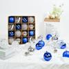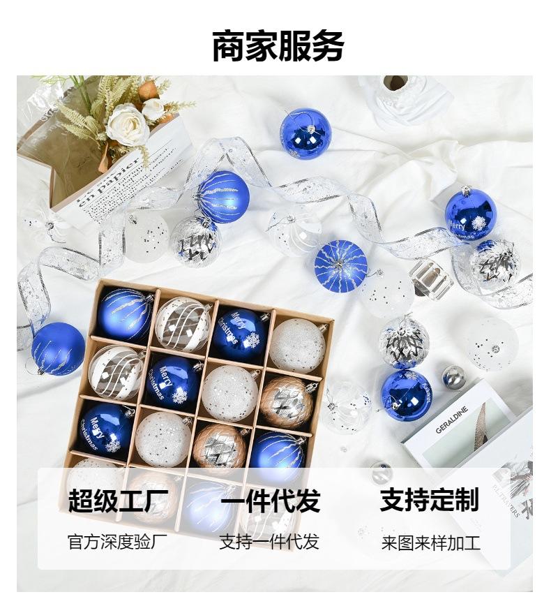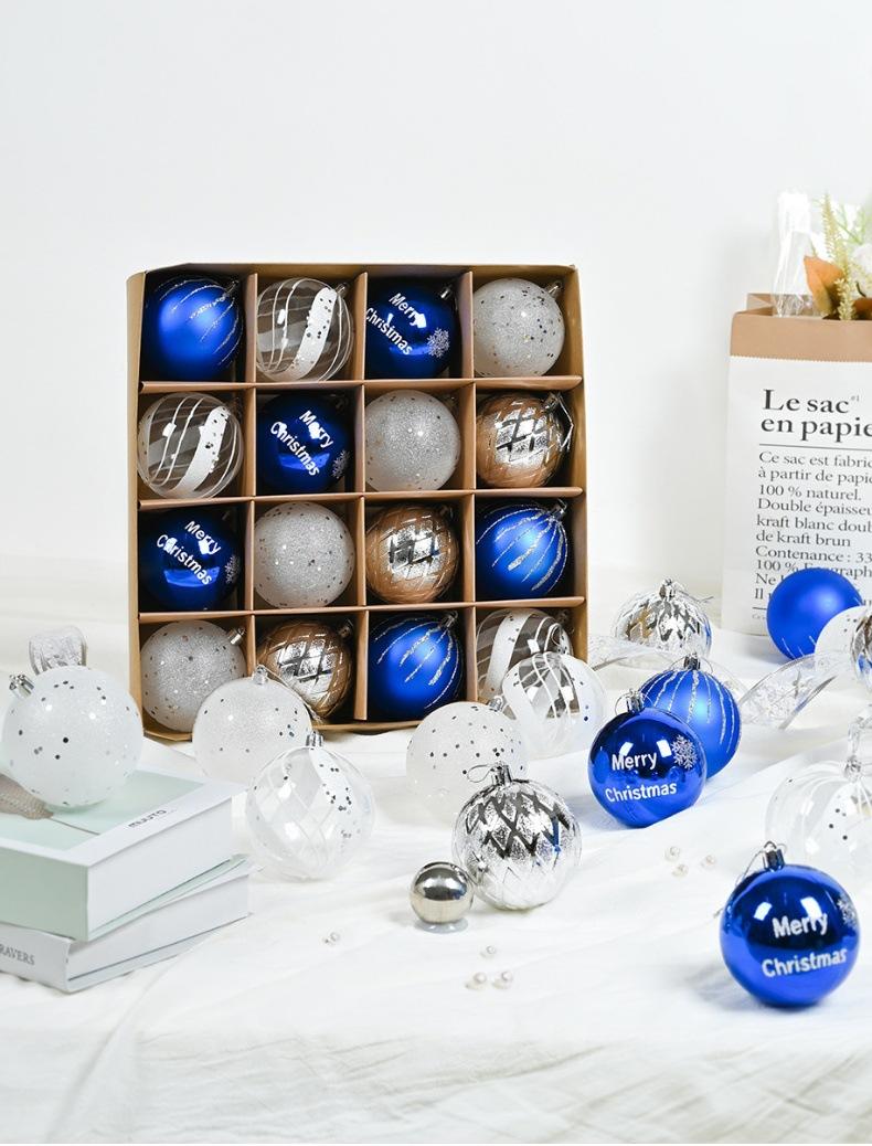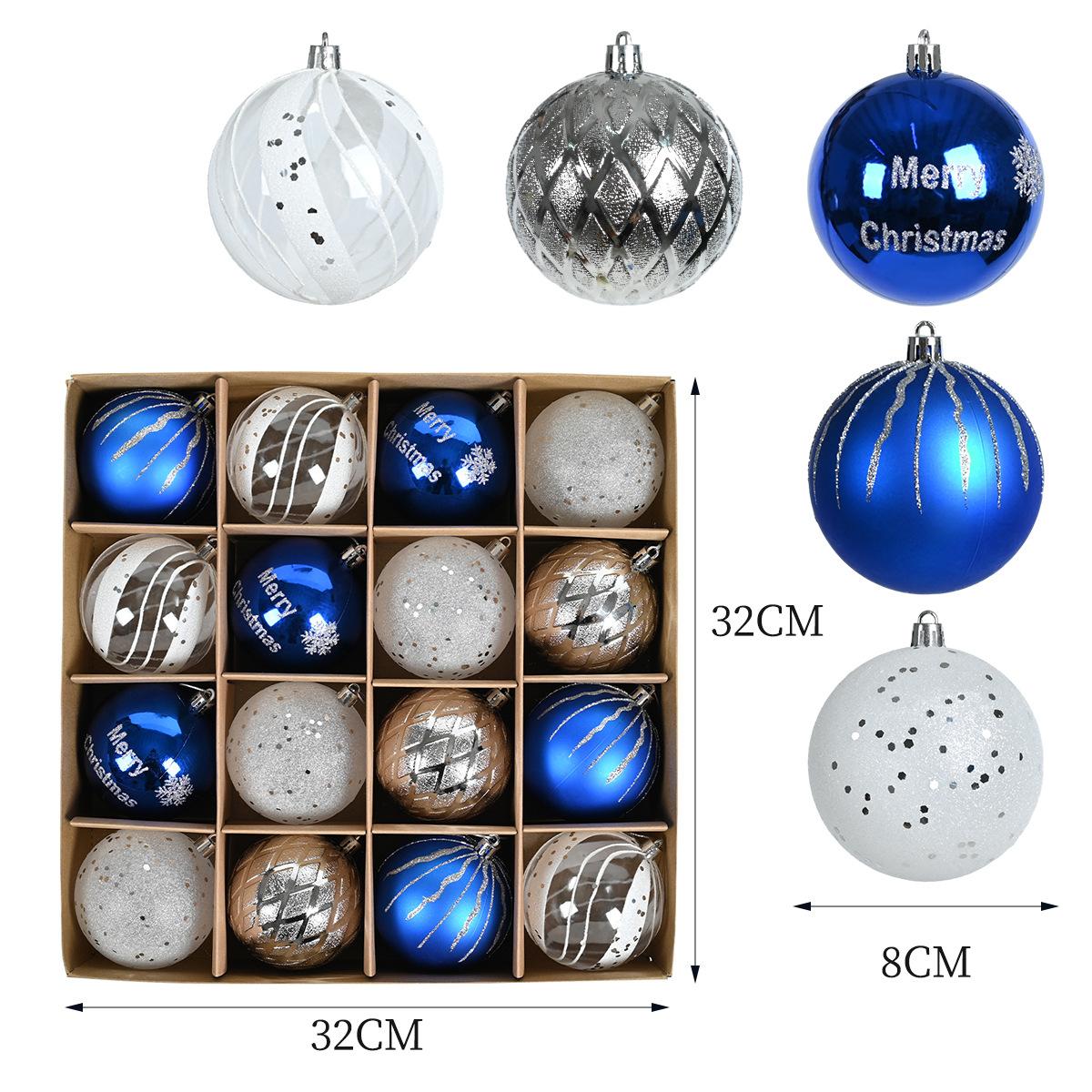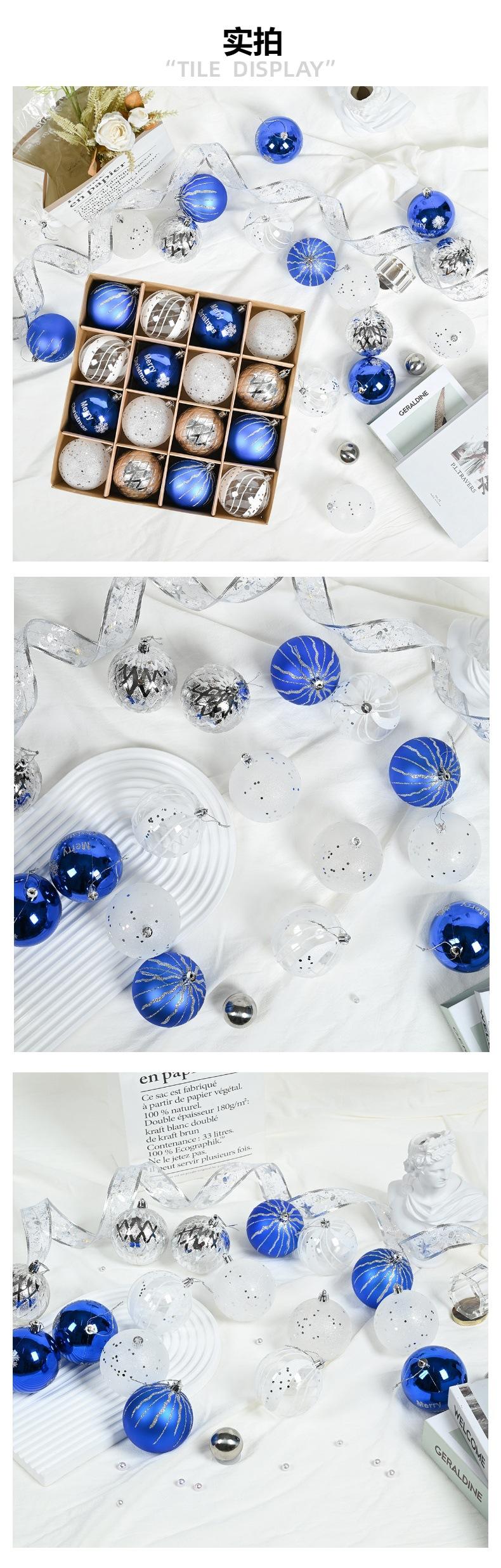 Adornos navideños de 8 cm, bola de plástico azul, plateada y blanca, galvanizada y pintada a mano, colgante para fiesta navideña.
