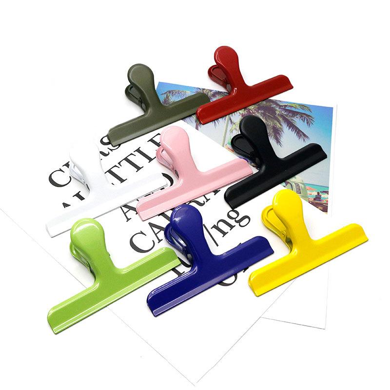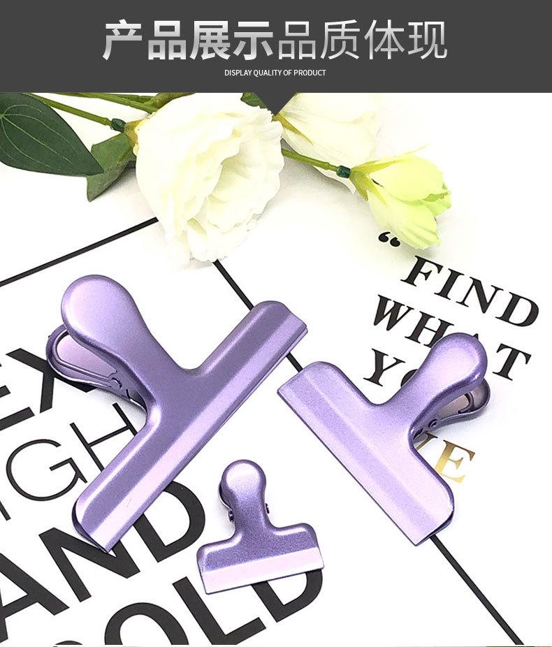 Clip de cuenta de mano, clip de boca sellada de color metálico, clip de boleto multifuncional morado esmerilado, clip de refrigerio, lindo clip de cola larga al por mayor
