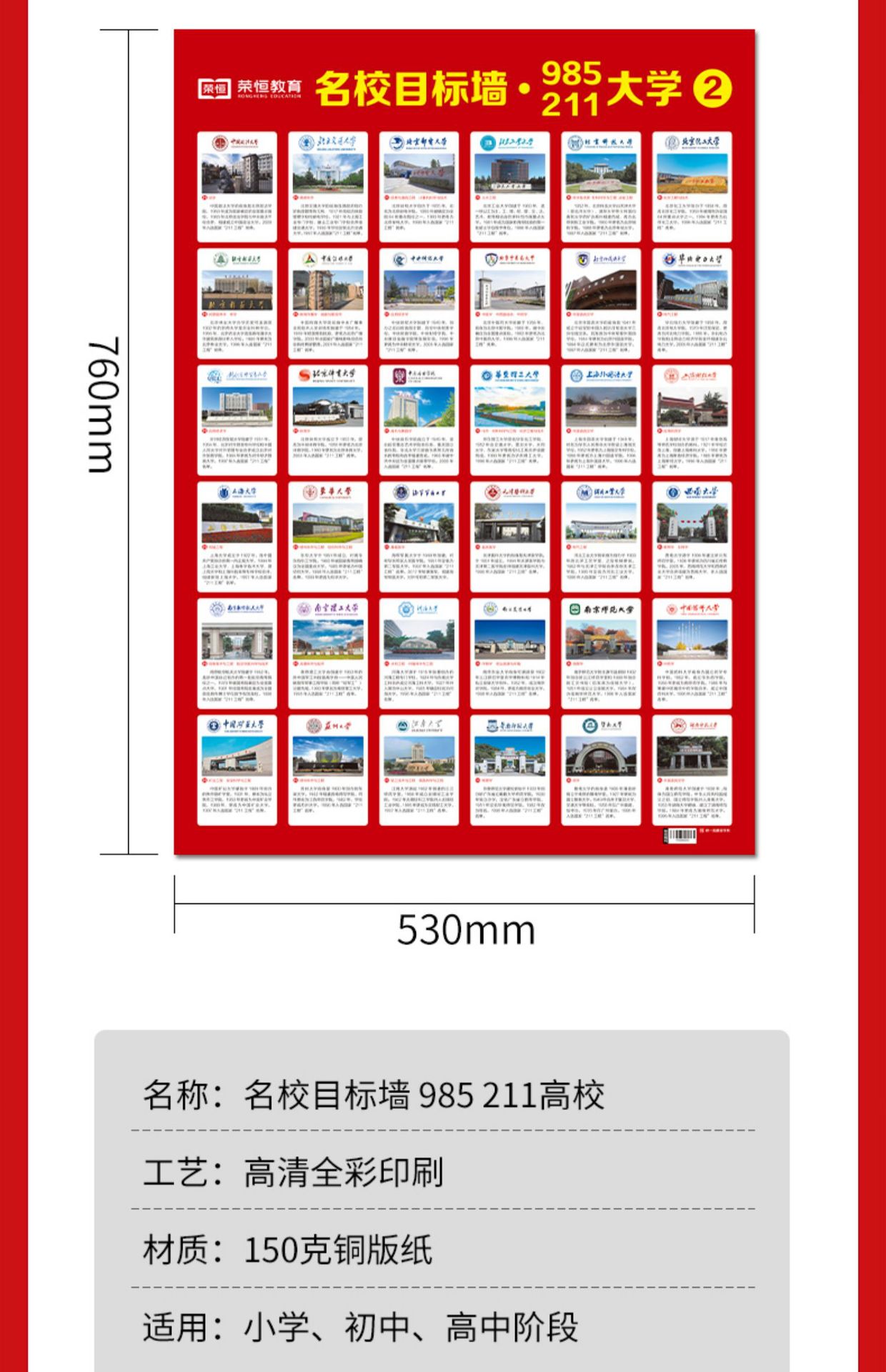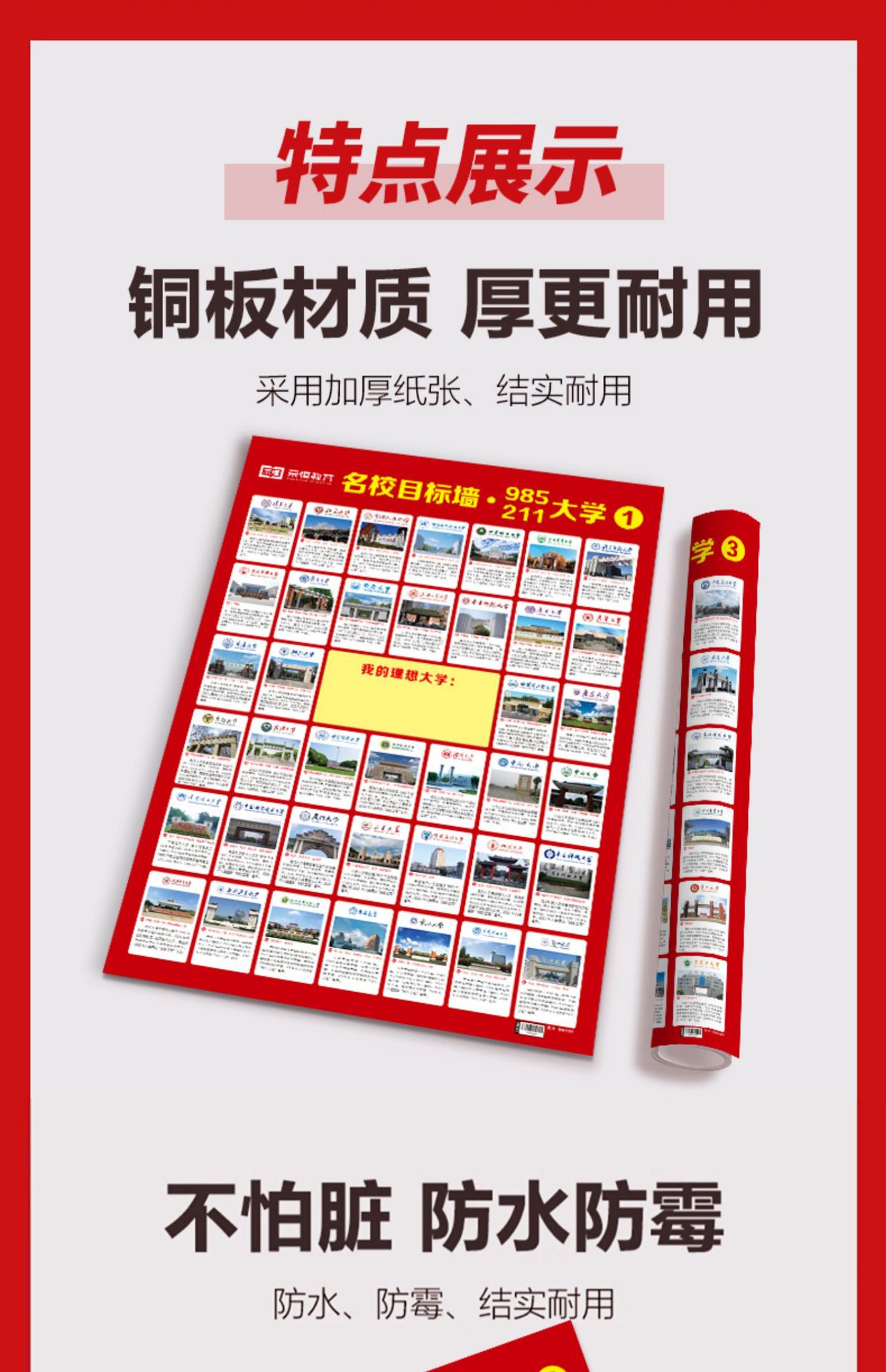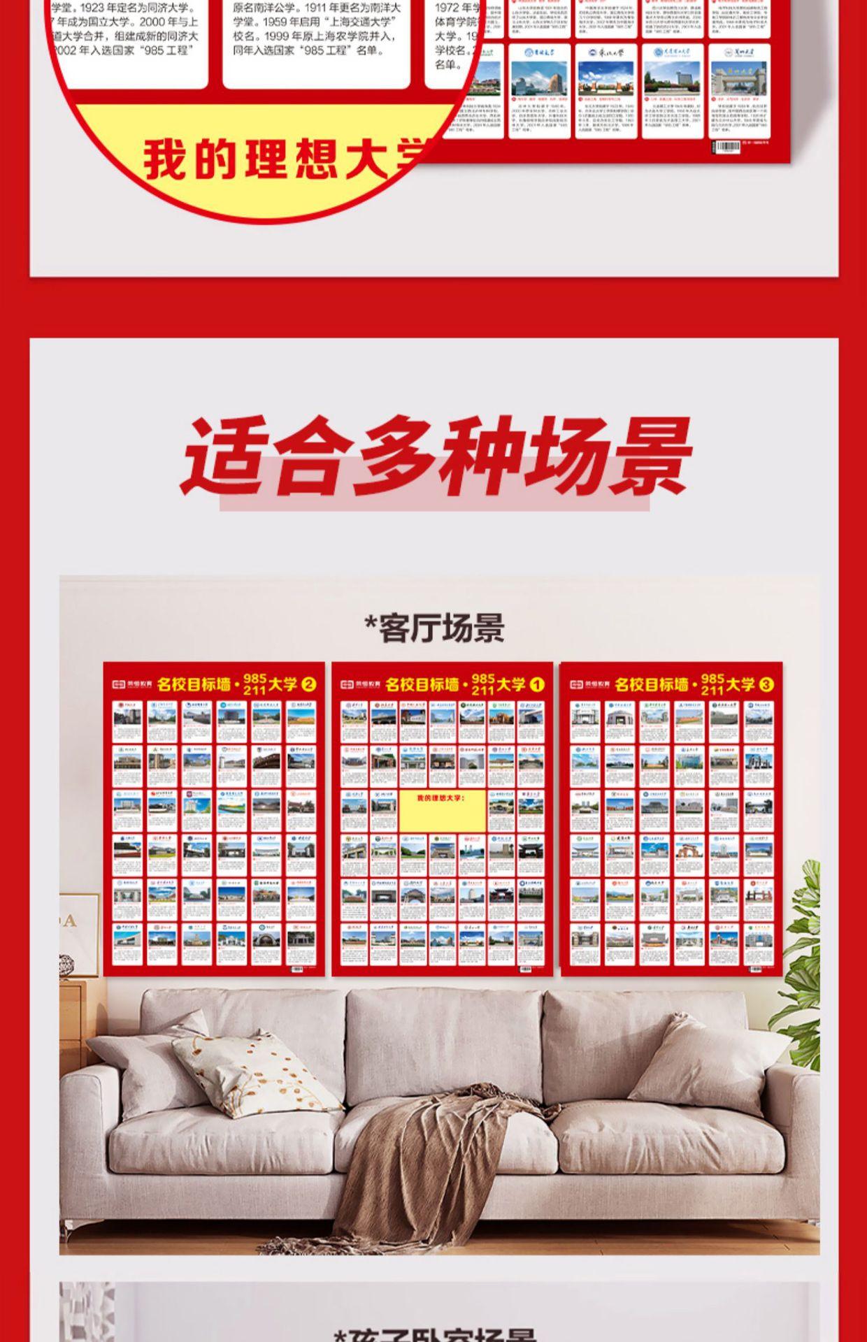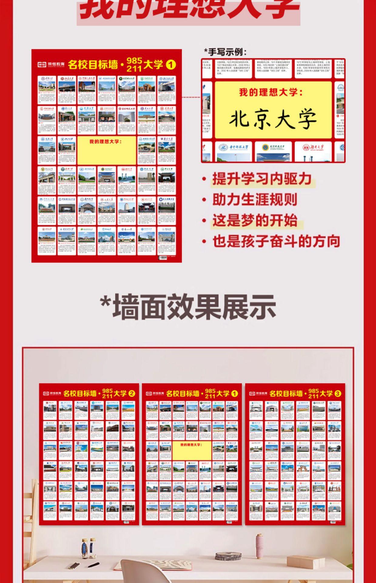 Lista de incentivos de las mejores universidades: pegatinas de pared Target 5985/211 100 universidades presentan el examen de ingreso a la escuela secundaria: gráfico de pared inspirador Target