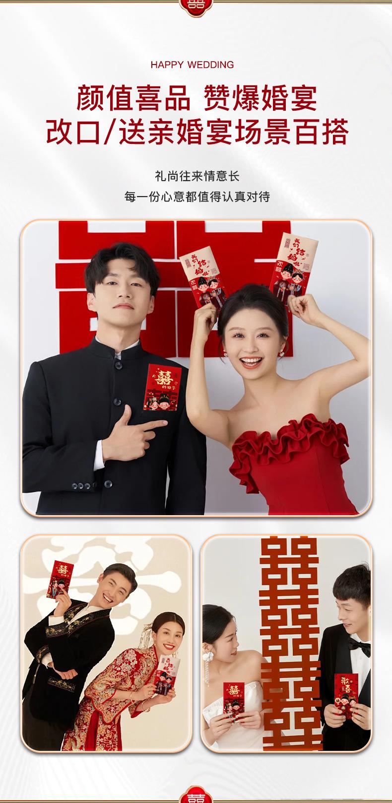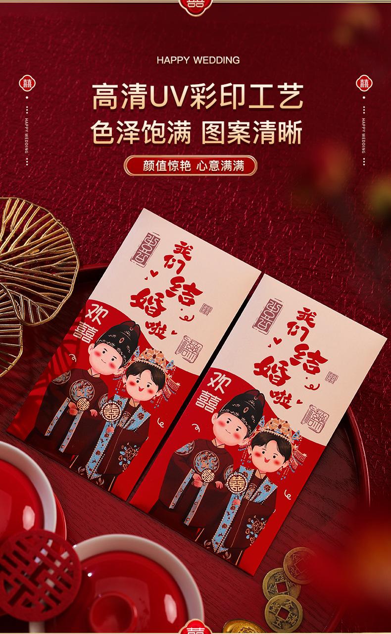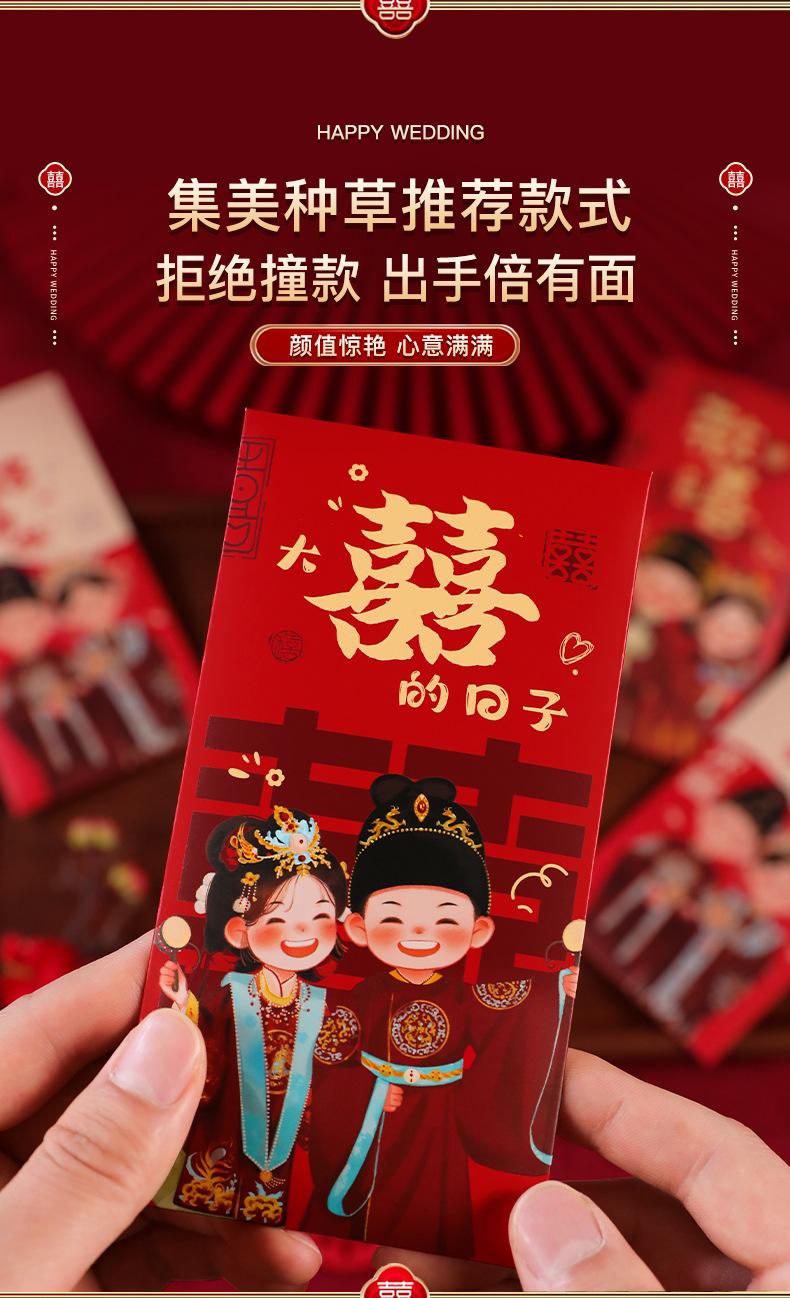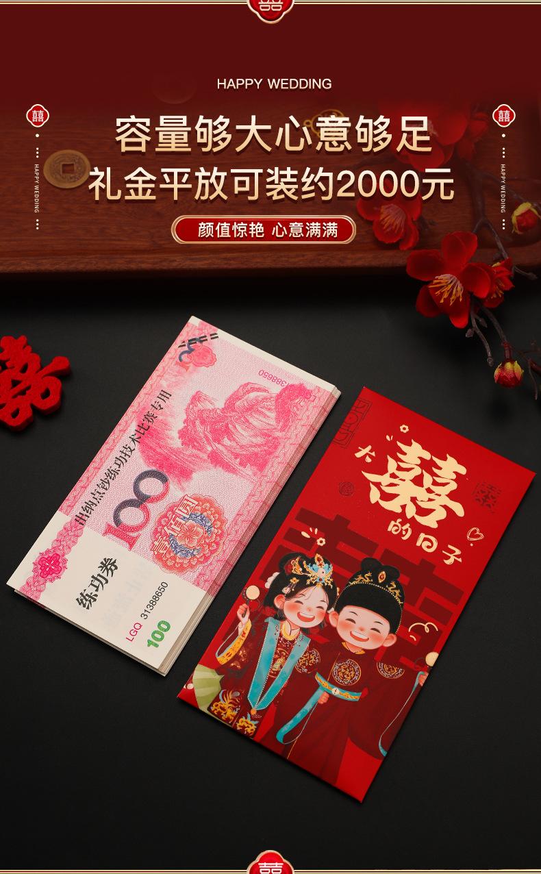 Sobre rojo especial para bodas de mil yuanes con parte de la palabra dorada para bodas, bolsa de sobre rojo grande, regalo de bodas, tarifa de cambio creativo