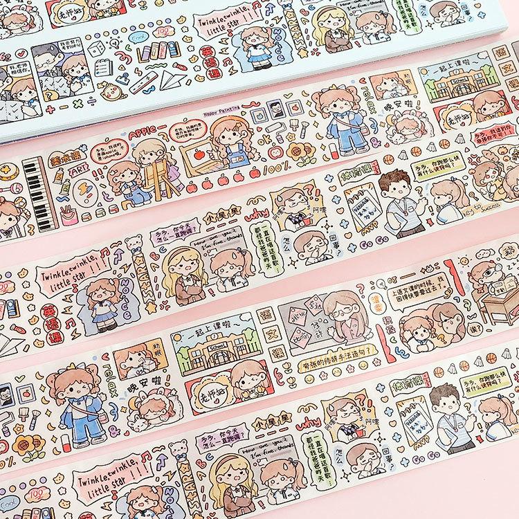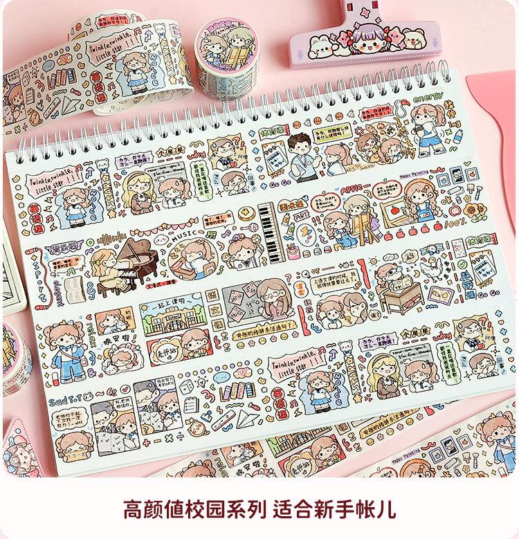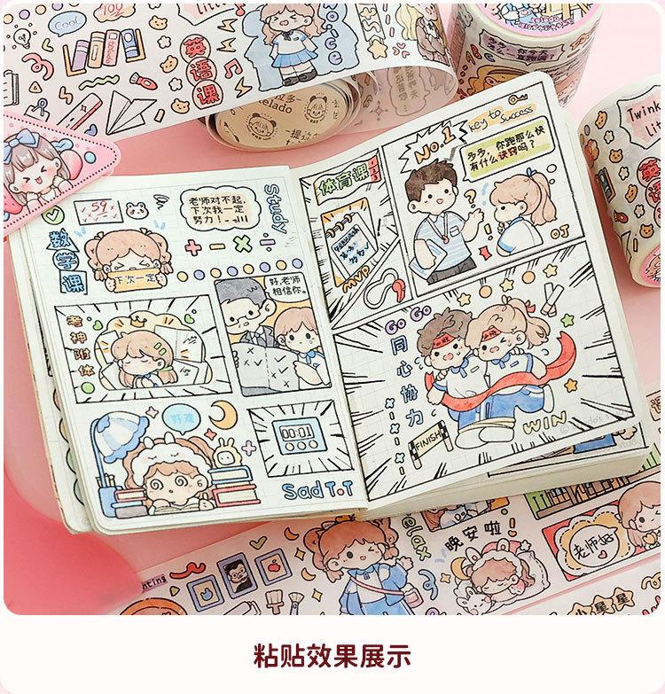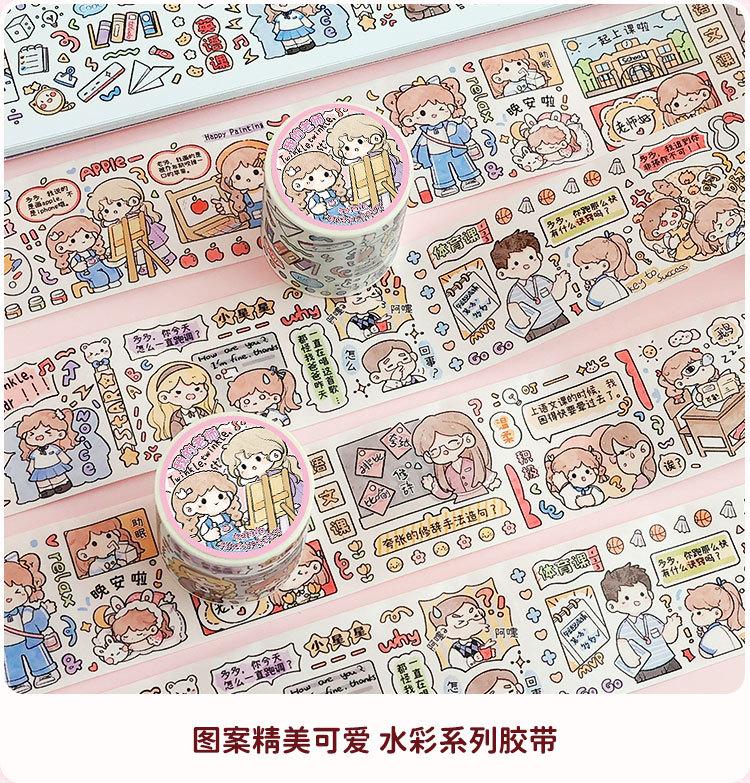 Cinta de acuarela Tirado, linda cinta de diario con forma de corazón de niña, venta al por mayor, pegatina de batata de dibujos animados, cinta de diario