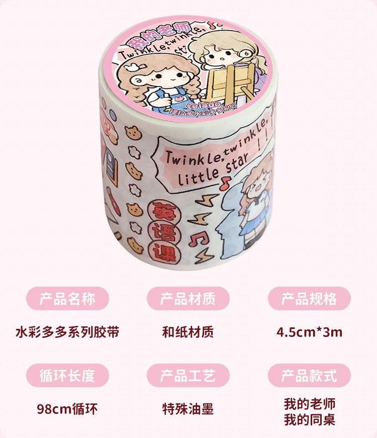 My teacher-watercolor tape, My deskmate-watercolor tape, Wake up notes-watercolor tape