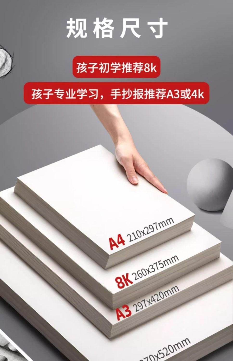 Papel de dibujo 8k, papel blanco para pintura 4k, papel de acuarela, papel para pintura para estudiantes de arte, papel de periódico escrito a mano para estudiantes de primaria, papel A4 engrosado