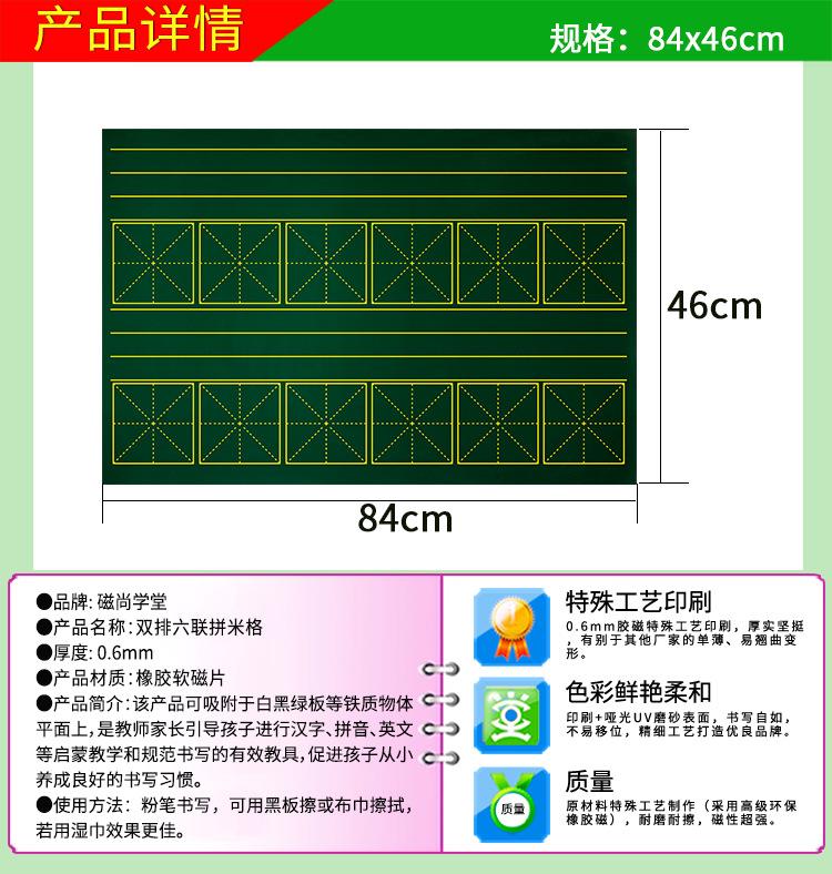 Enseñanza pinyin Cuadrícula de caracteres Tian Pegatinas de pizarra magnética suave Rompecabezas de seis articulaciones de doble fila Mickey 84*46 verde ventas directas de fábrica