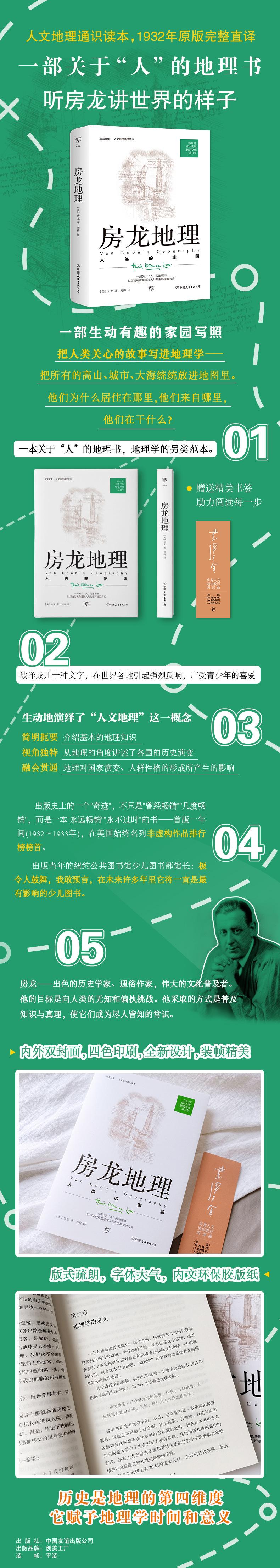 1. Un libro de geografía sobre "personas", un modelo alternativo de geografía. 2. Interpreta vívidamente el concepto de "geografía humana": no solo introduce brevemente conocimientos geográficos básicos, sino que también cuenta la evolución histórica de varios países desde una perspectiva geográfica única, y analiza el impacto de la geografía en la evolución histórica del país y la formación del carácter de las personas. 3. Ha sido traducido a docenas de idiomas y ha suscitado fuertes repercusiones en todo el mundo, especialmente amado por los jóvenes. 4. Dentro de un año de la primera edición (1932-1933), siempre ha encabezado la lista de obras de no ficción en los Estados Unidos. Un "milagro" de la publicación en la actualidad no es solo un "éxito de ventas único" o "varios éxitos de ventas", sino un libro "siempre superventas" y "nunca desactualizado". Etc.