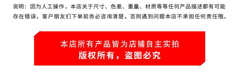 La diferencia de color es inevitable en las compras en línea. Todas las fotos de los productos en esta tienda se toman de objetos reales. Sin embargo, habrá cierta diferencia de color debido a los monitores (especialmente los monitores LCD), las cámaras, la luz solar, etc., lo cual es inevitable en las compras en línea. Haremos todo lo posible para explicarlo en los artículos. Por favor, comprenda que el color de todos los productos está sujeto al producto real. Amigos que son muy sensibles al color y tienen poca imaginación, por favor no lo compren. Amigos que tengan dudas pueden referirse a los comentarios de otros compradores o contactar a nuestro servicio de atención al cliente de preventa antes de decidirse a comprar. Por favor, asegúrese de verificar el tamaño del producto cuidadosamente antes de disparar, porque el método de medición de todos es suelto y apretado, y el error de 1-3 cm está dentro del rango normal. Por favor, comprenda. La diferencia de color, la ligera diferencia de tamaño y otros problemas como diferente de su imaginación no se utilizarán como base para reseñas medias o malas. Si tiene alguna pregunta, por favor comuníquese antes de disparar, ¡gracias!