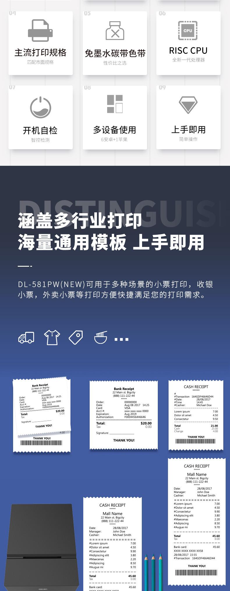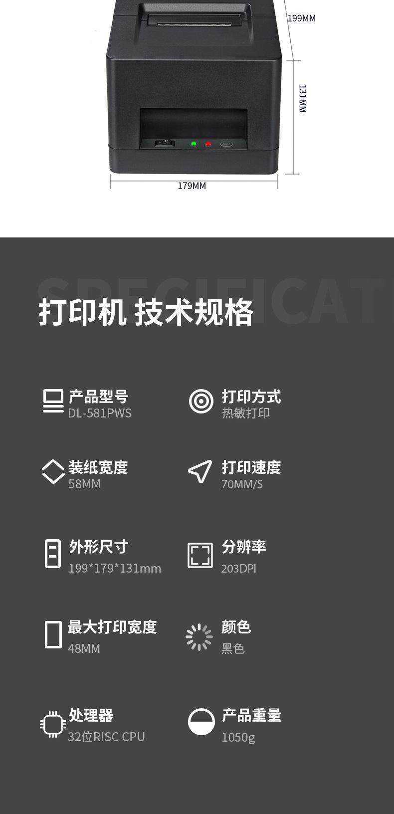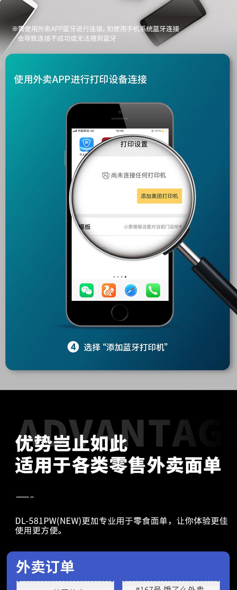 Impresora térmica de pedidos para llevar Deli DL-581PWS, recibos, Hungry Meituan Baidu Alipay Bluetooth