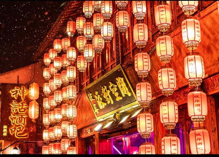 Linternas Publicitarias, Grandes Redondas Rojas de Piel de Oveja Estilo Antiguo Decoraciones para Año Nuevo Chino para Balcón y Entrada, Decoraciones para el Festival de Primavera