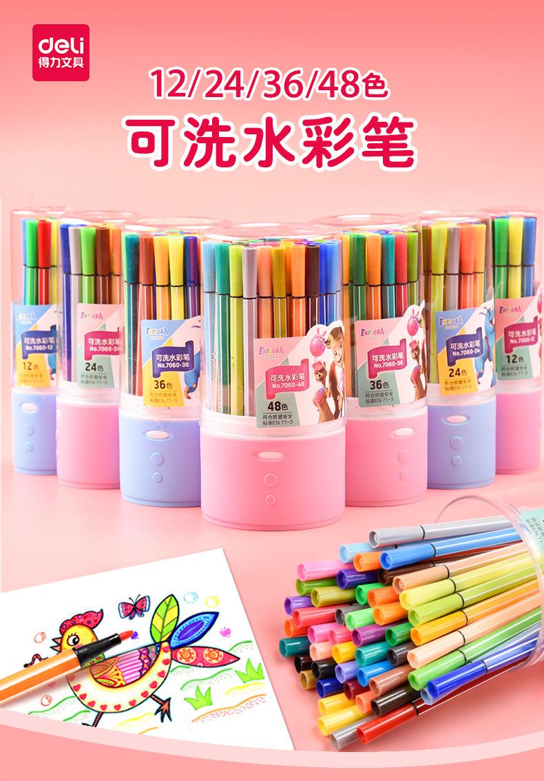 Deli - Juego de 24 acuarelas lavables para pintar, ideal para niños de primaria y jardín de infancia.