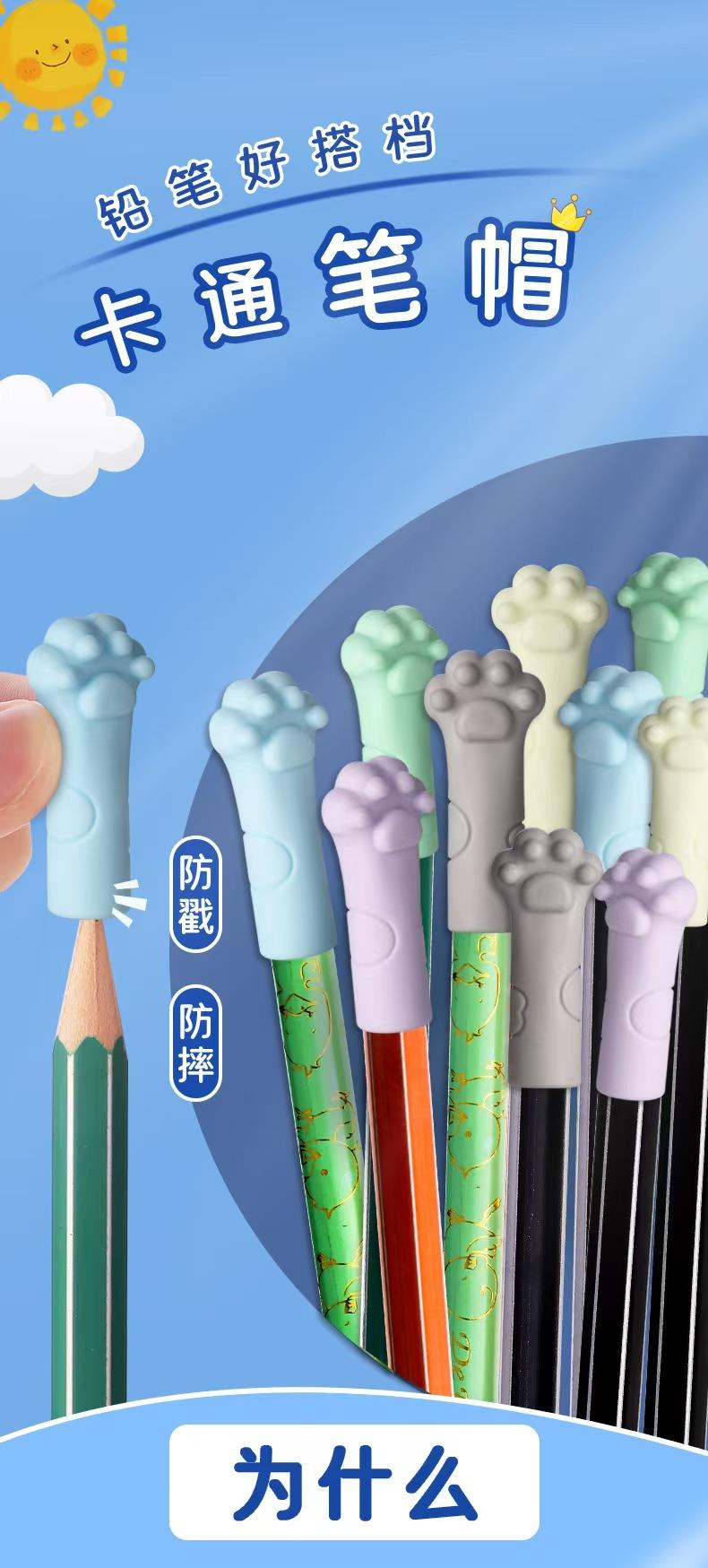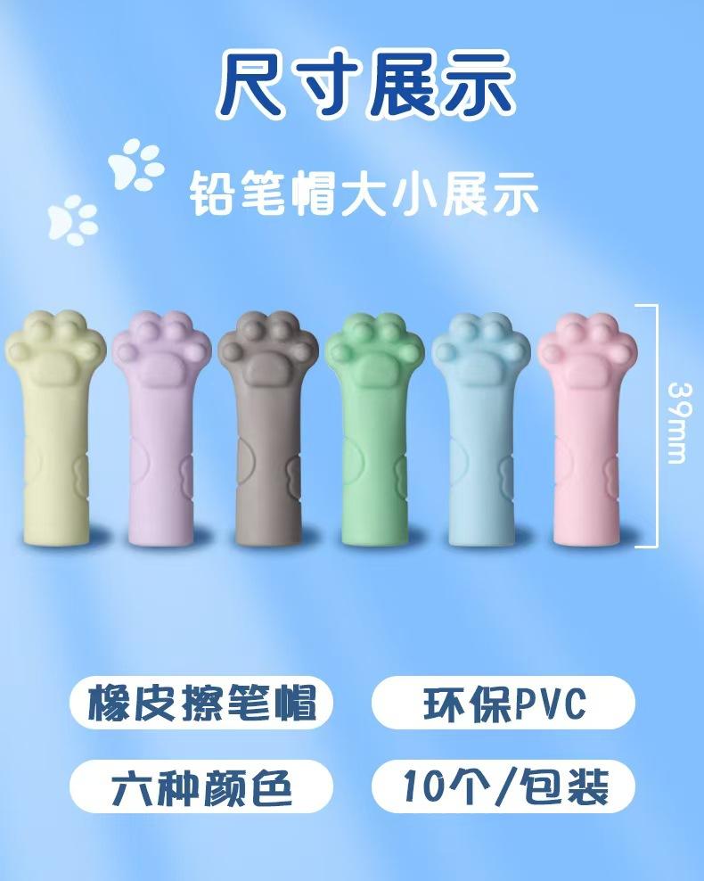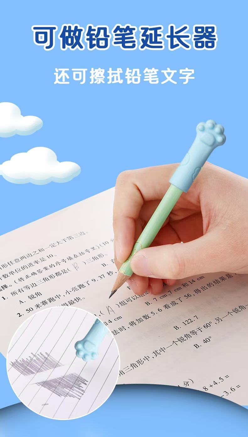 Juego de lápices de PVC, borrador de dibujos animados, tapa de lápiz, extensor de lápiz para jardín de infantes, borrador para estudiantes de primaria, tapa de lápiz
