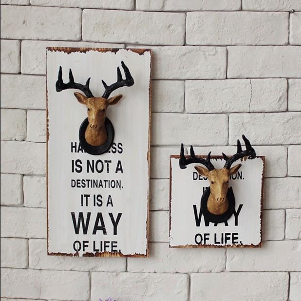 Cabeza de ciervo tridimensional de madera para colgar en la pared, estilo retro americano, para restaurante, pasillo, decoración de pared