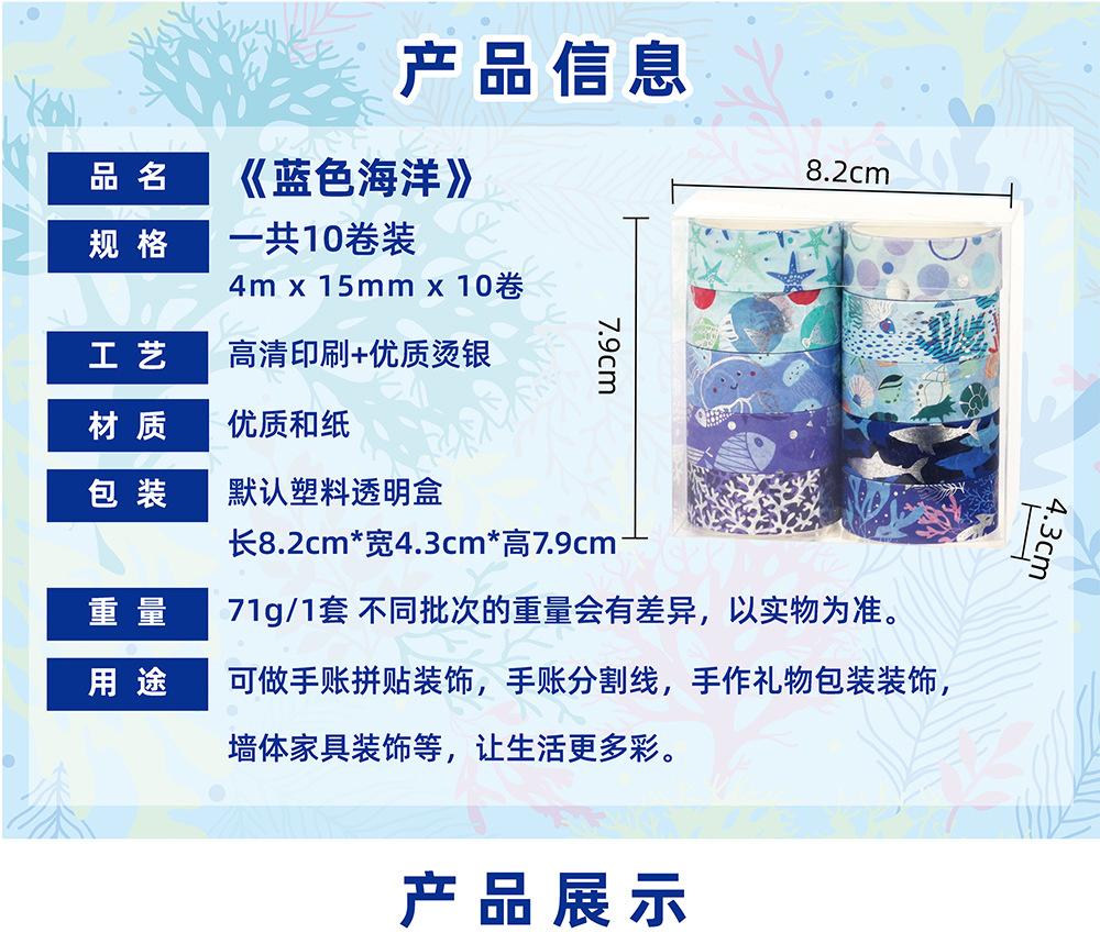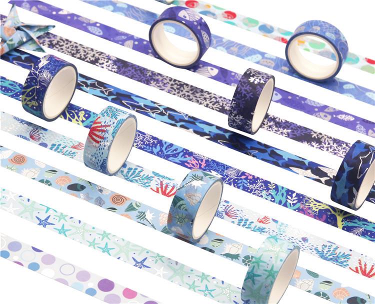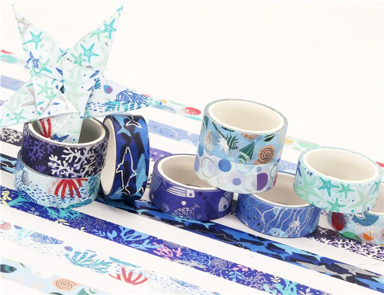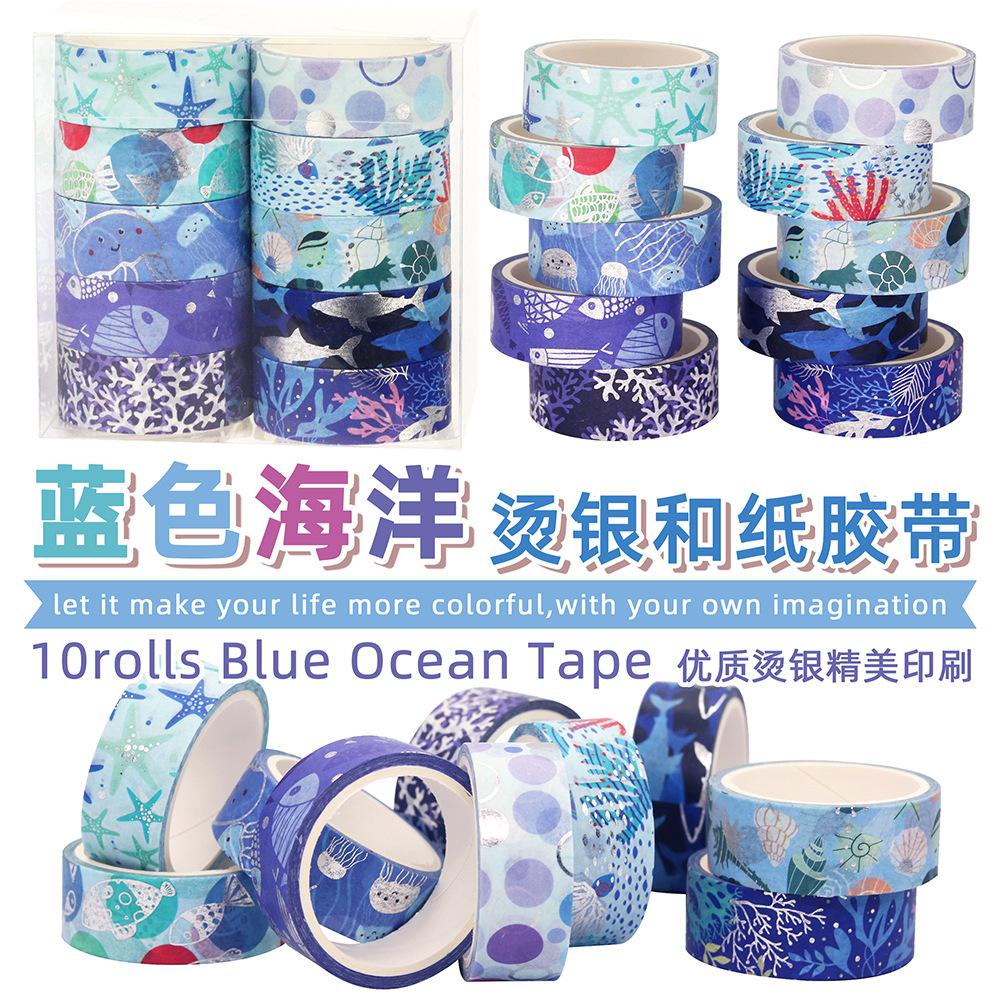 Suministro de Amazon Manualidades Decoración 10 Rollos Serie Océano Cinta Washi Bronceada Fresca Venta al por Mayor Transfronteriza