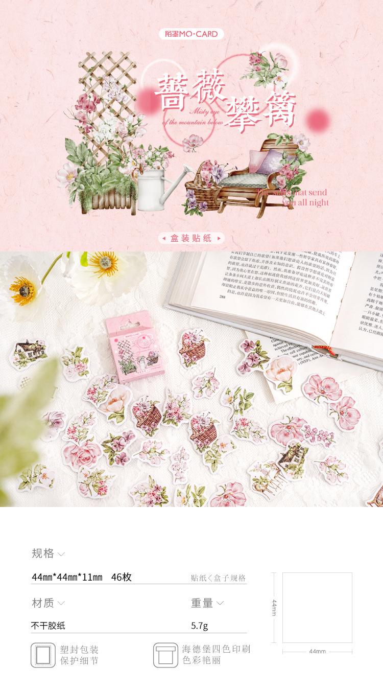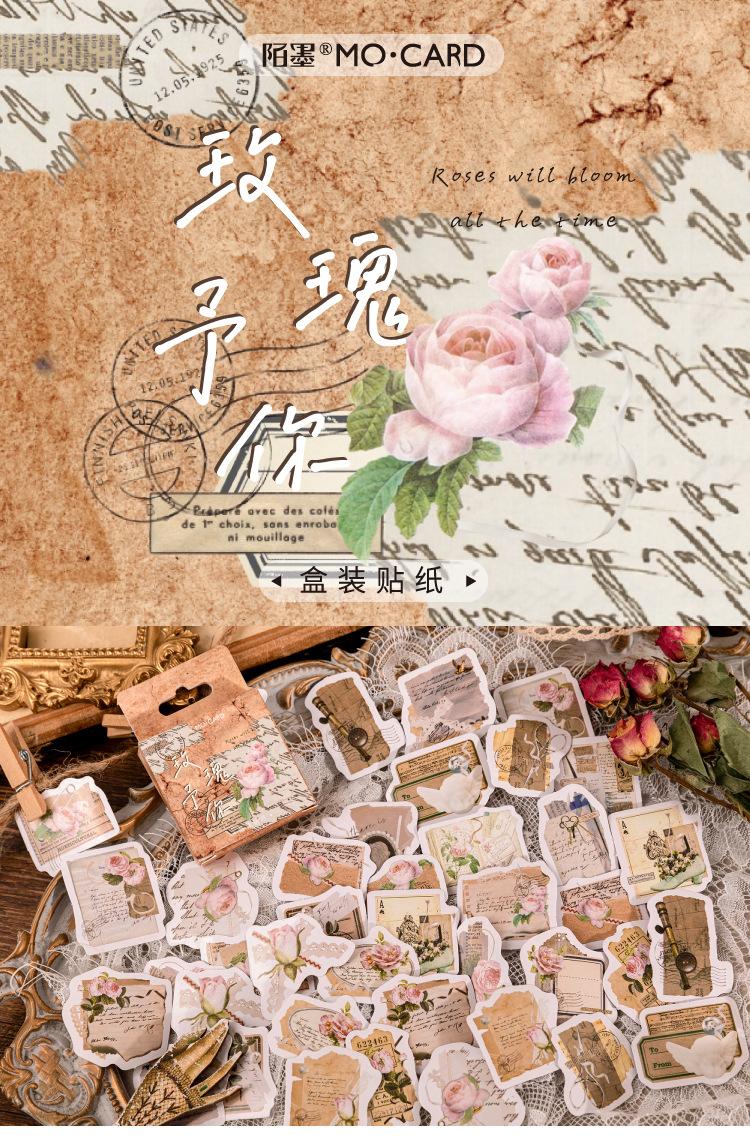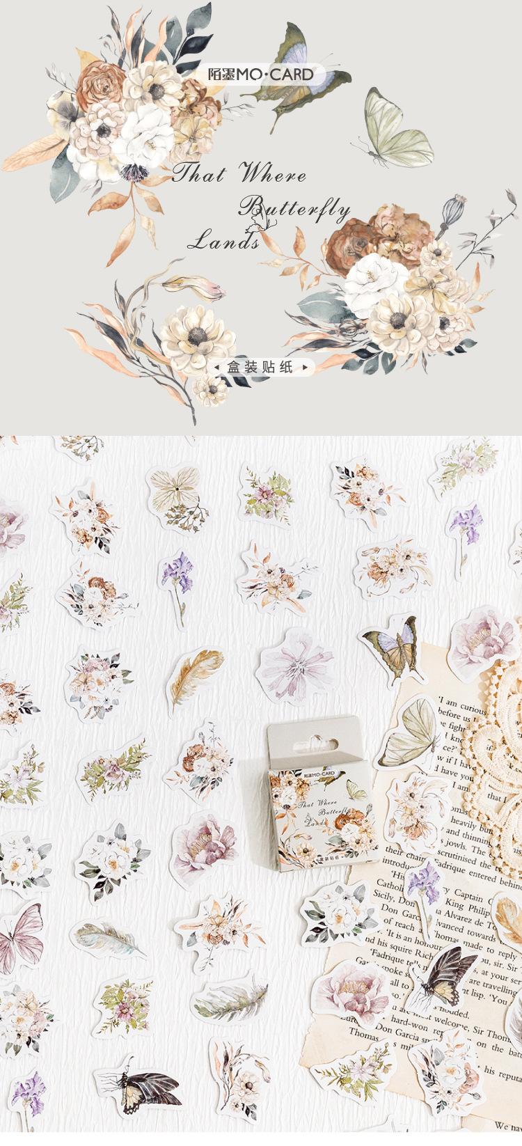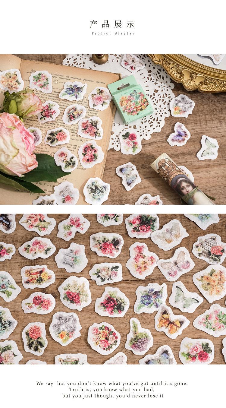 Colección de Stickers en Caja Transfronterizos Momo Retro Planta Flor Manualidades DIY Decorativos Autoadhesivos Sellado
