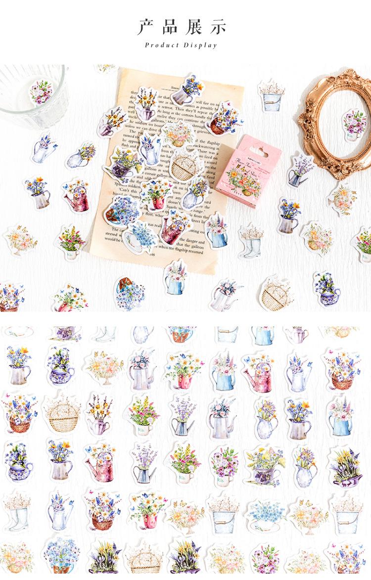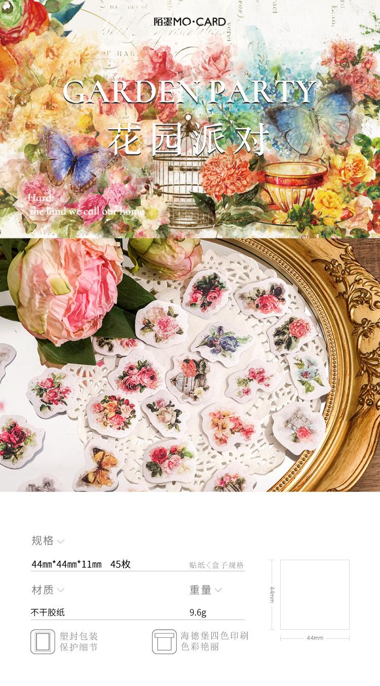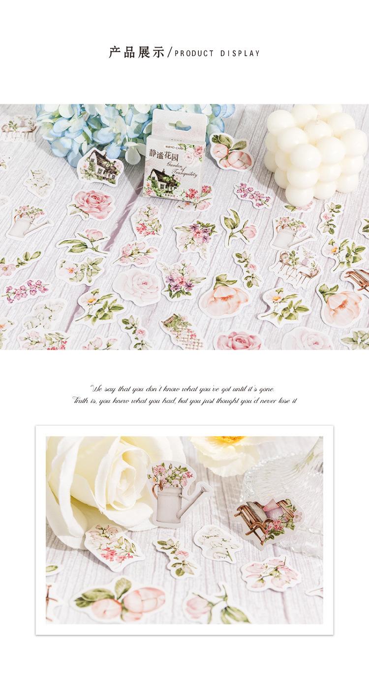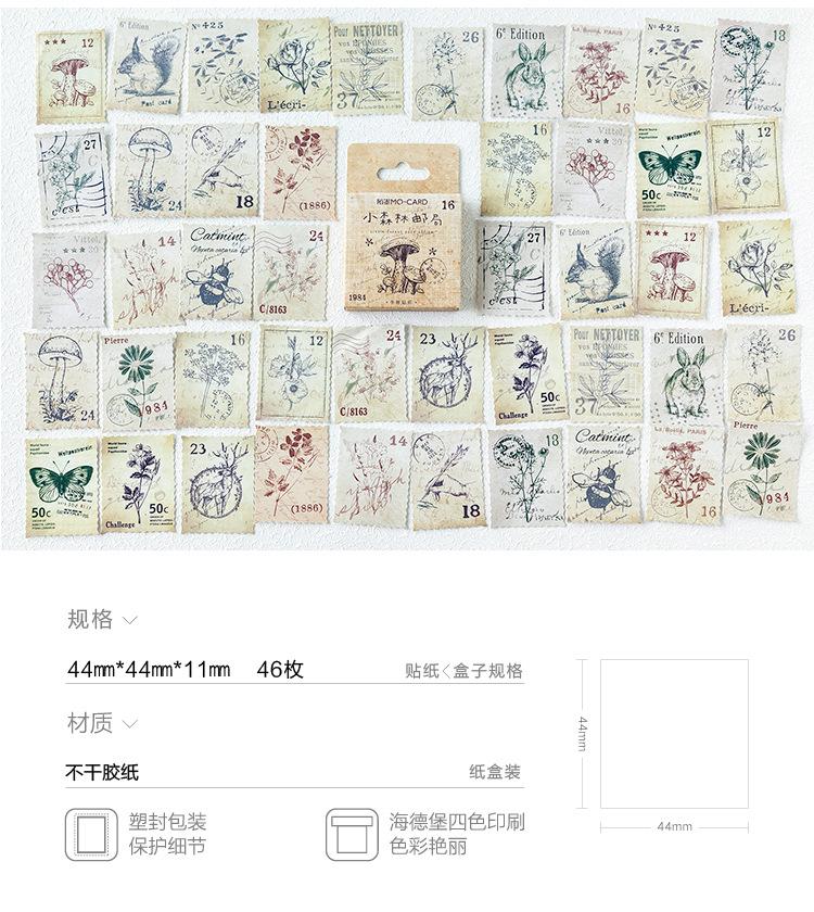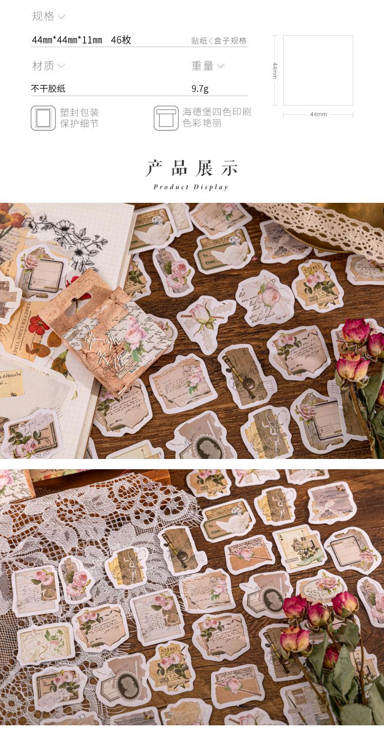 Colección de Stickers en Caja Transfronterizos Momo Retro Planta Flor Manualidades DIY Decorativos Autoadhesivos Sellado