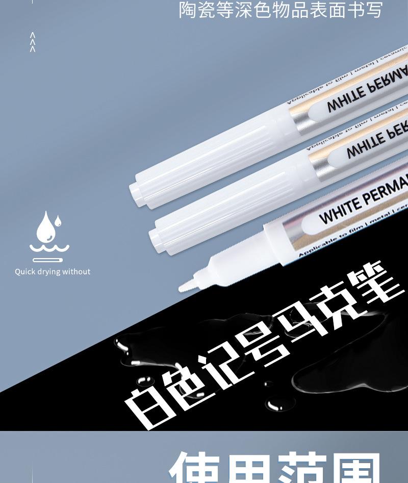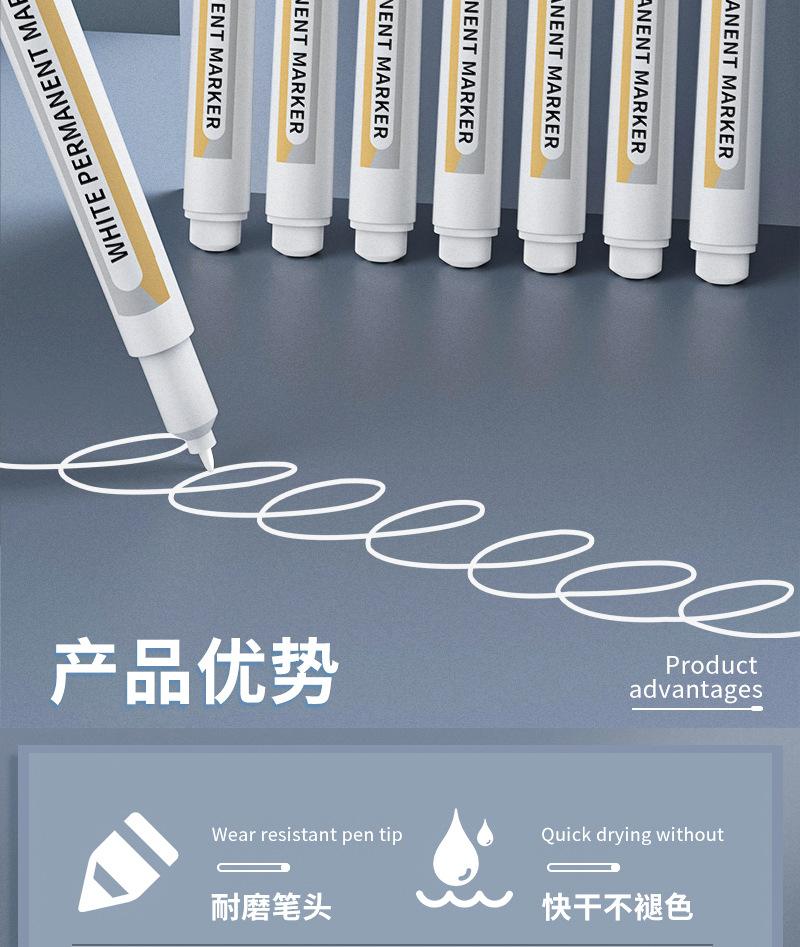Blanco Extra-blanco Extra-fino Venta Caliente Transfronteriza Marcador Blanco Secado Rápido Fácil de Desvanecer Pluma Marcadora Pintura Artística Pluma Resaltadora