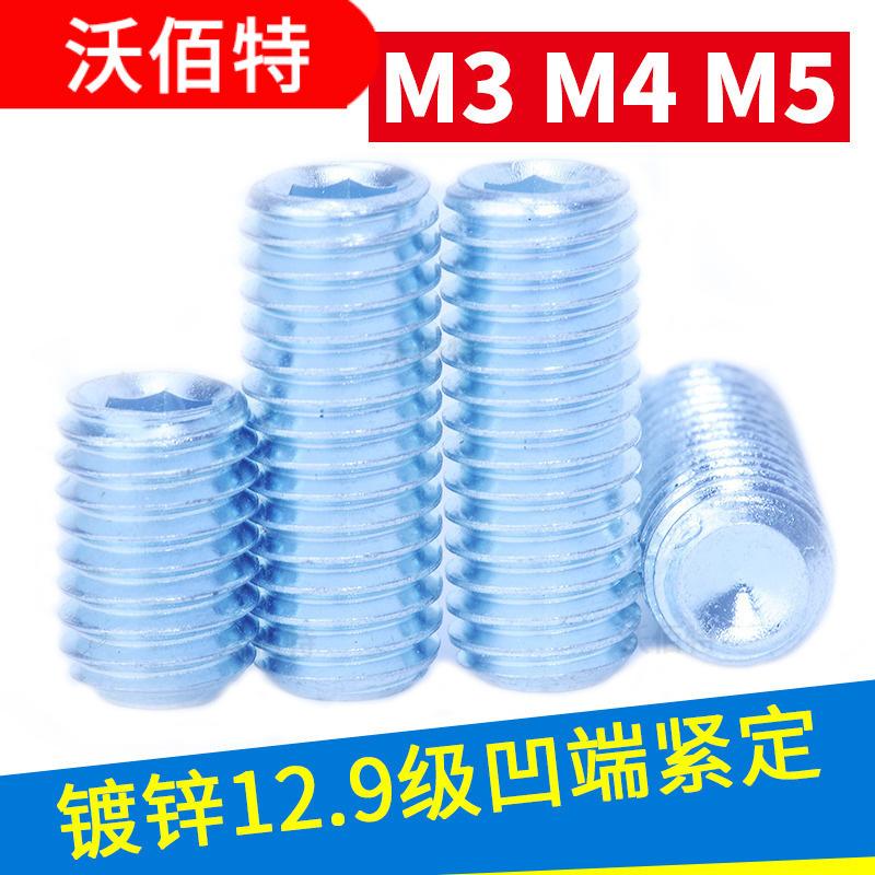 Tornillo de cabeza cóncava con cabeza hexagonal, galvanizado trivalente, grado 12,9, tornillo de máquina sin cabeza, tornillo superior M3M4M5