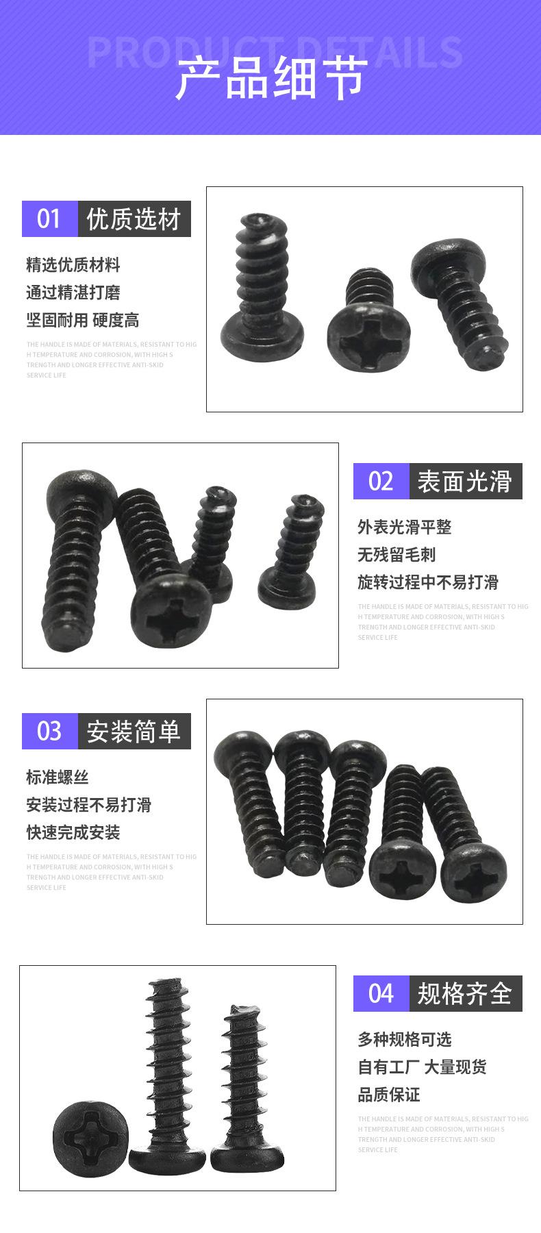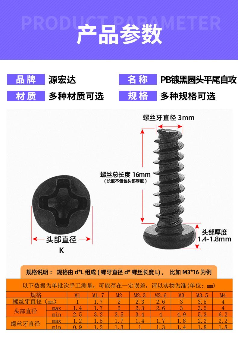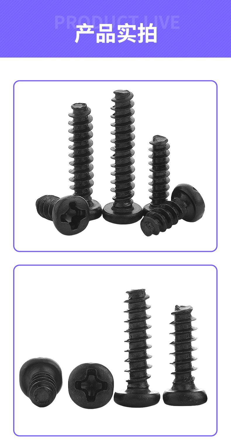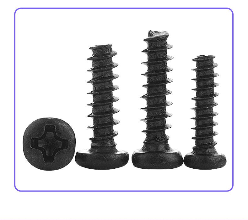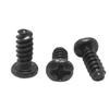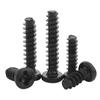 Tornillo de rosca de cabeza redonda, plana y empotrada en cruz, de acero al carbono PB, duro, negro, para electrónica, de plástico, pequeño, M1-M5