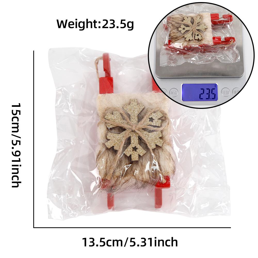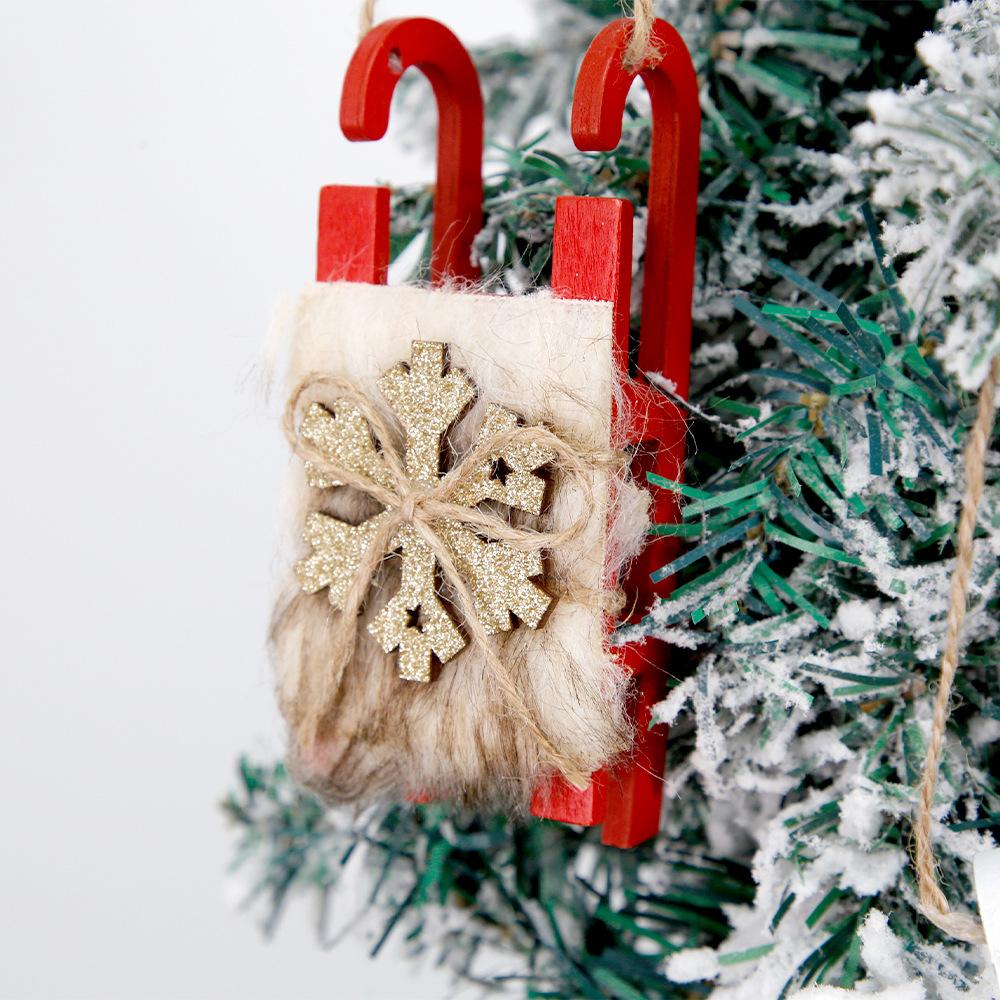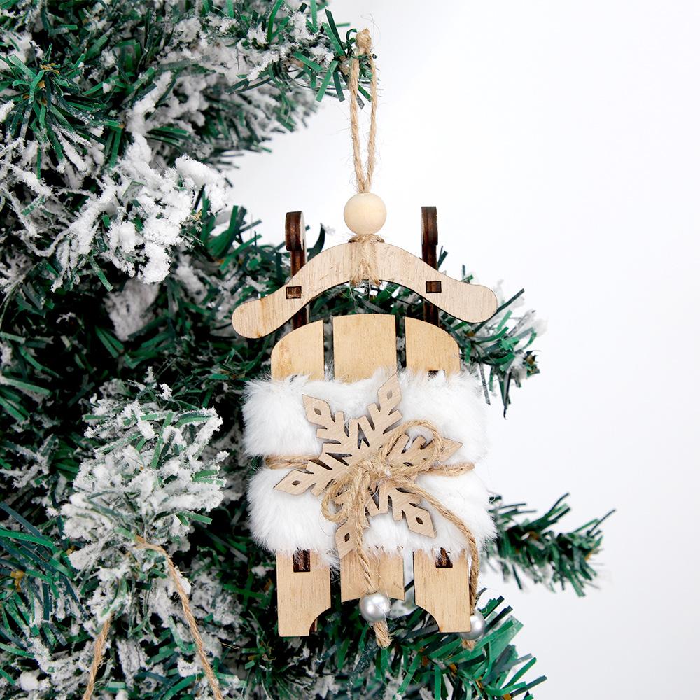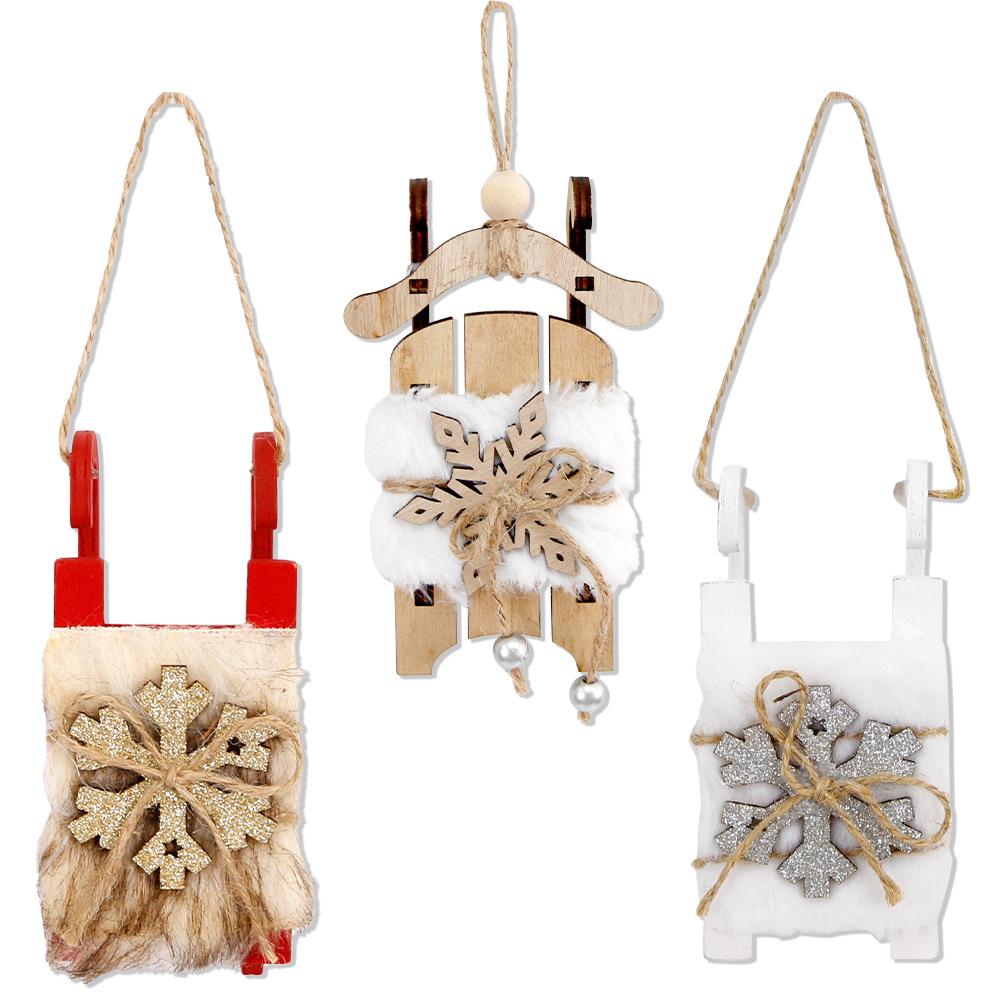 Nuevo colgante de trineo de madera navideño transfronterizo, adornos navideños para fiestas, adornos de trineo de copos de nieve de terciopelo blanco