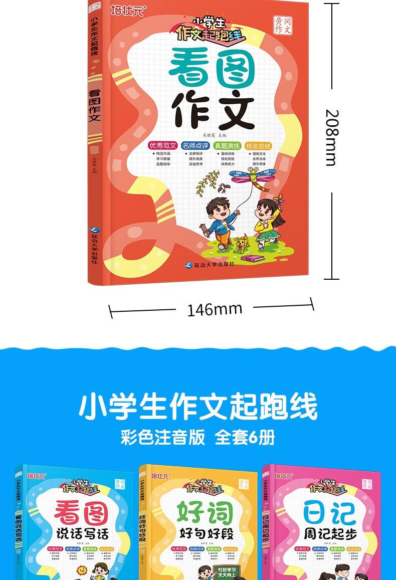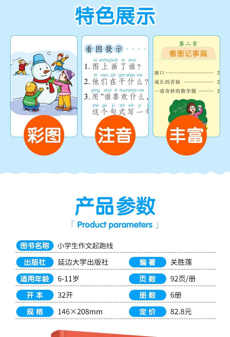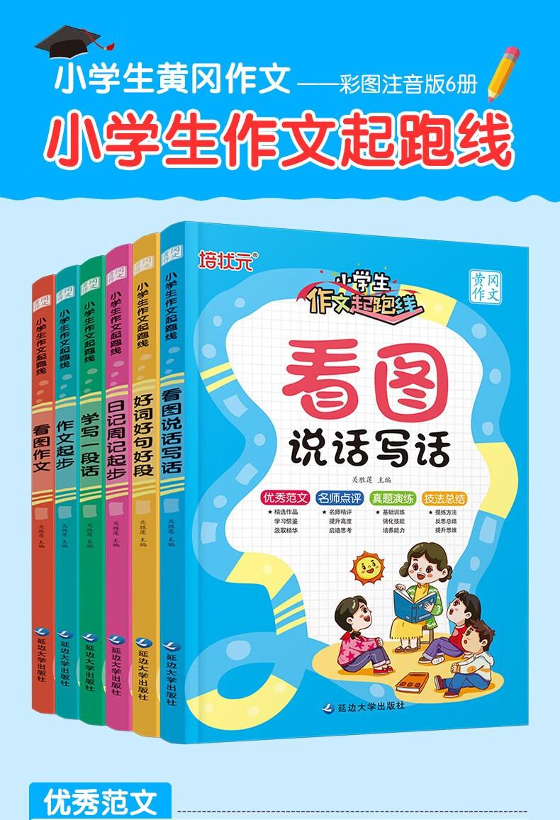 Línea de partida para la composición de estudiantes de primaria Volumen 6 Composición Huanggang Grado 1-6 Edición Zhuyin Composición Comienza a mirar figuras, hablar y escribir palabras