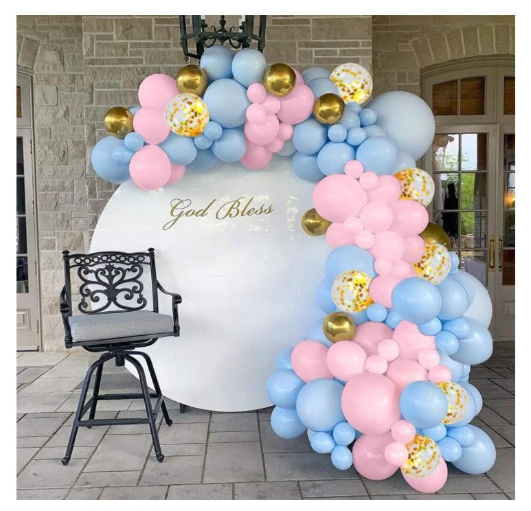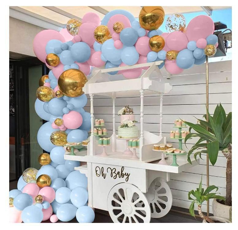 Macaron Azul Rosa Globo Metalizado Guirnalda de Globos Cumpleaños Fiesta de Bebé Revelación de Género Decoración