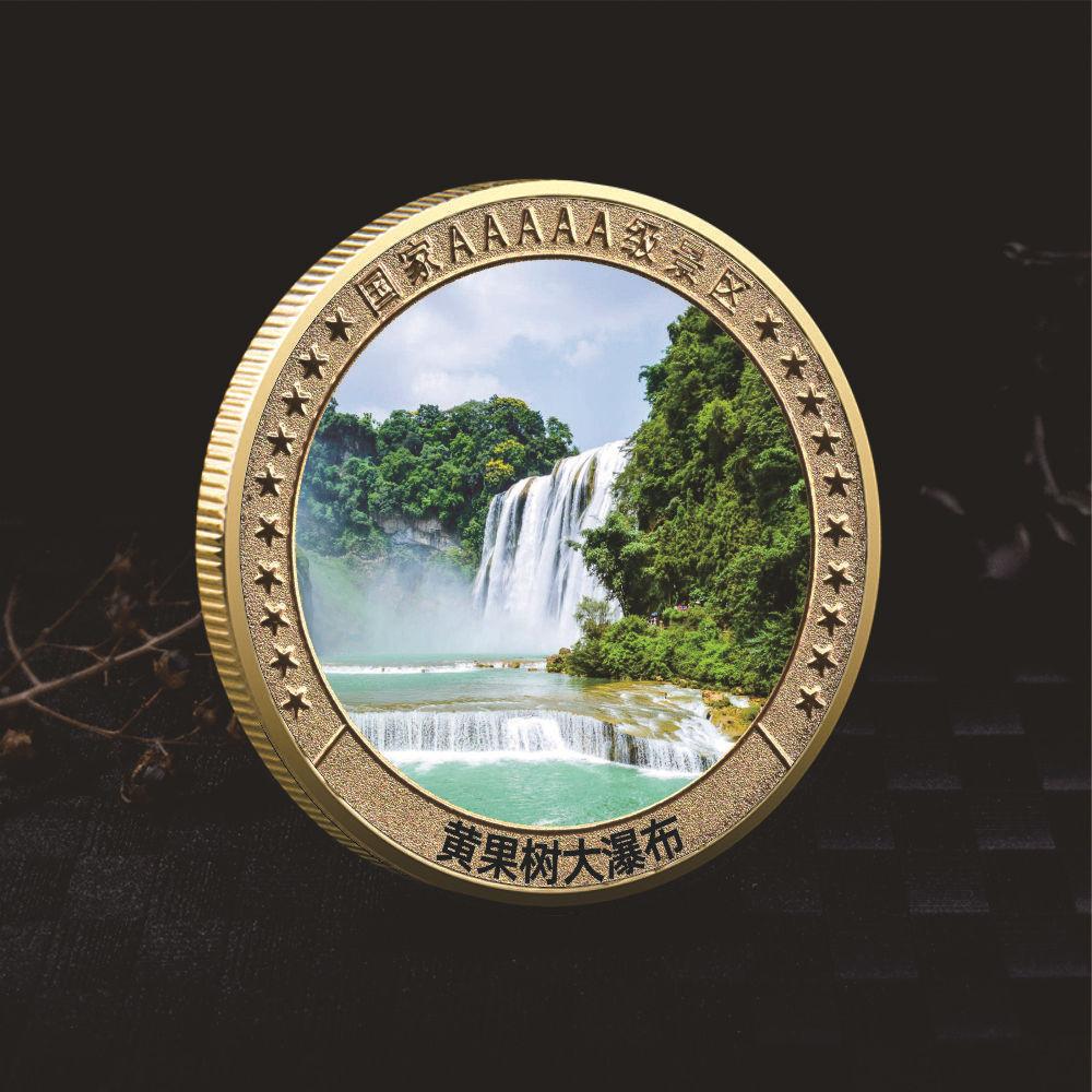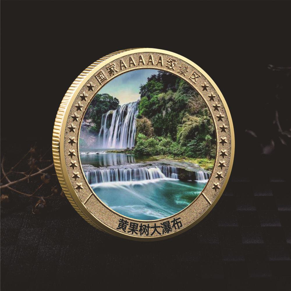 Moneda Conmemorativa Cascada Huangguoshu de Guizhou Diámetro 40 Medallas Conmemorativas de Metal Atracciones Turísticas Regalos Culturales y Creativos