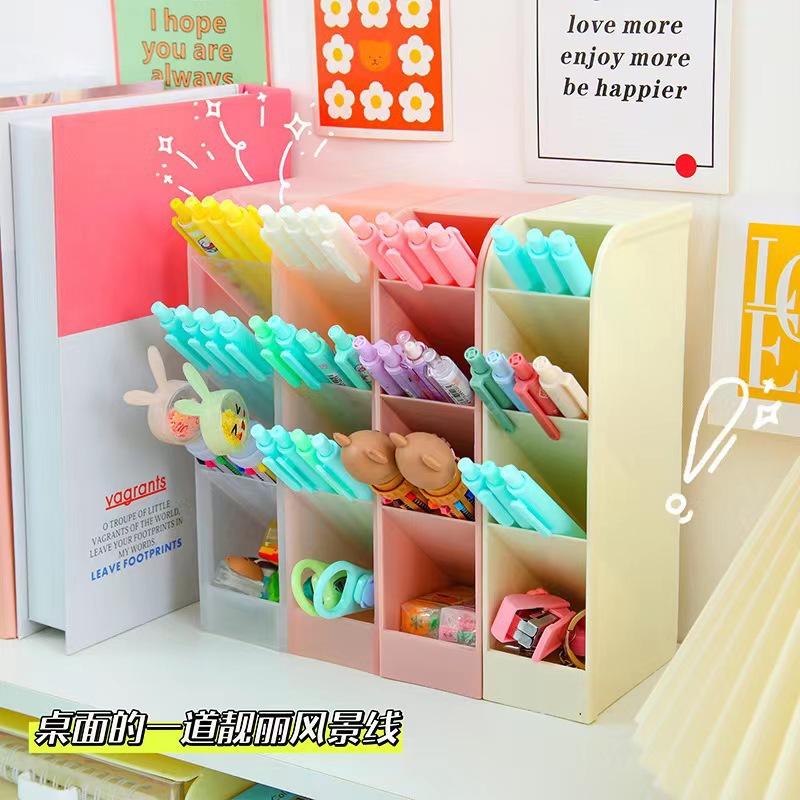 Portalápices transparente sencillo con personalidad nórdica, directo de fábrica, con múltiples rejillas oblicuas, para estudiantes, de plástico, para escritorio
