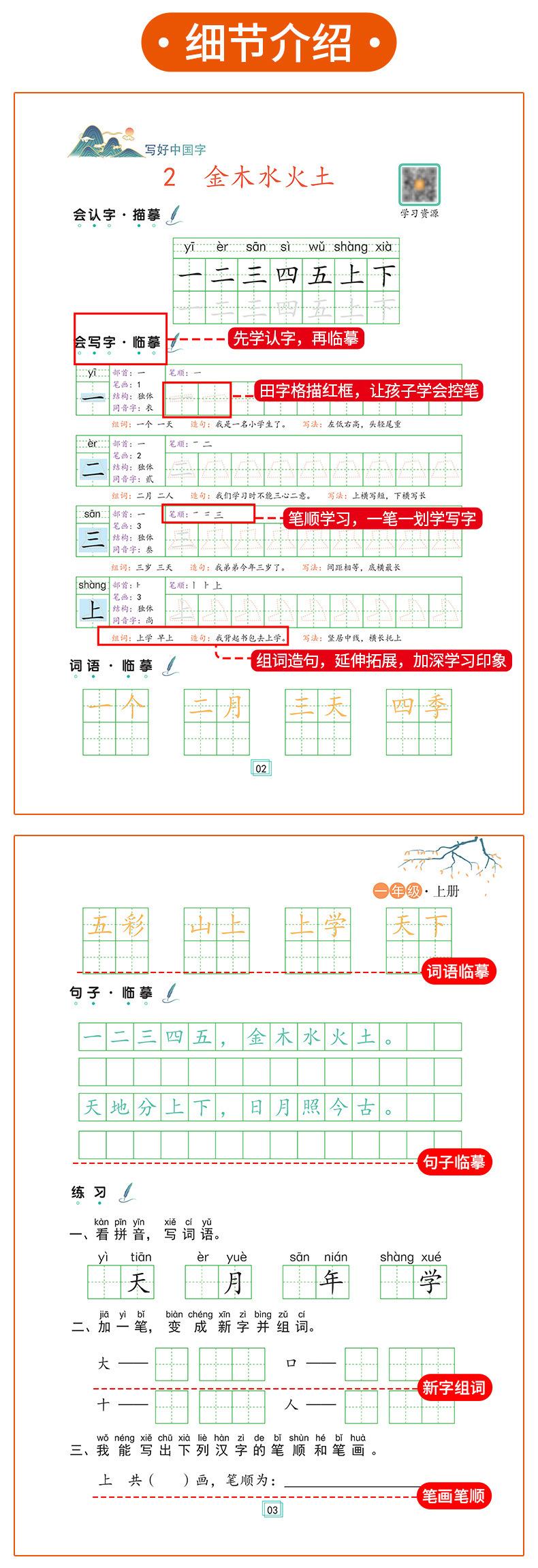 First grade students should master the art of writing chinese characters, Second grade students should master ...
