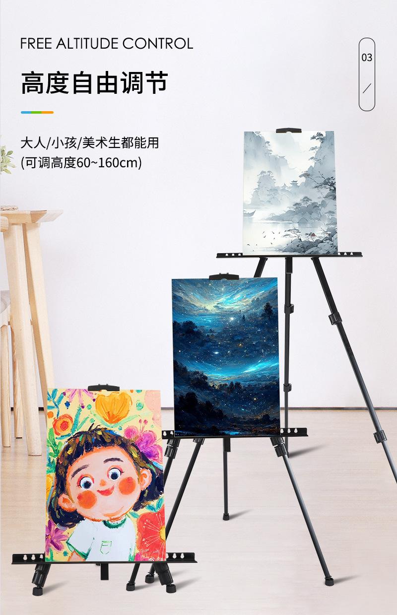 Amazon Transfronterizo Soporte de Exhibición Pop de 4 Secciones Caballete de Arte Publicitario Bocetos Telescópico Metal Portátil