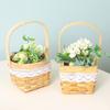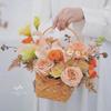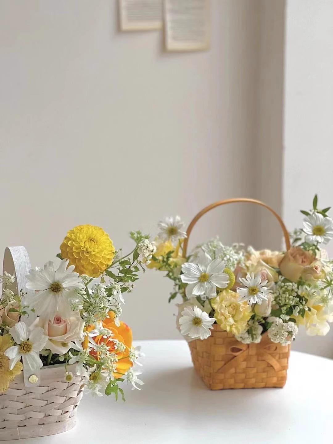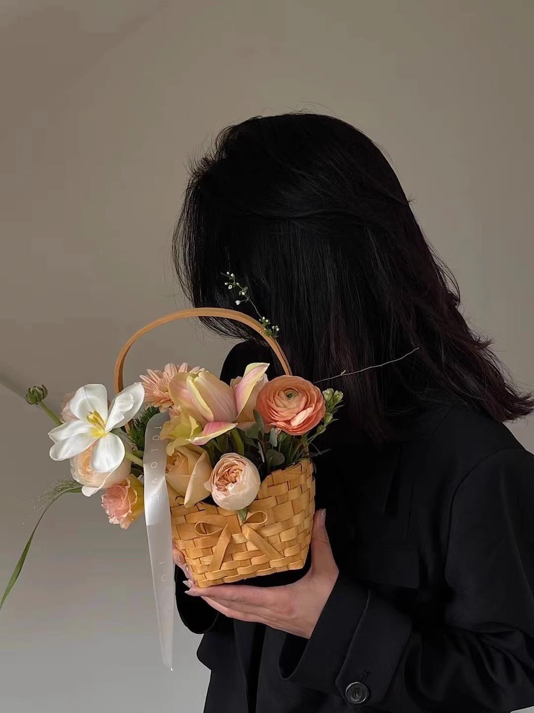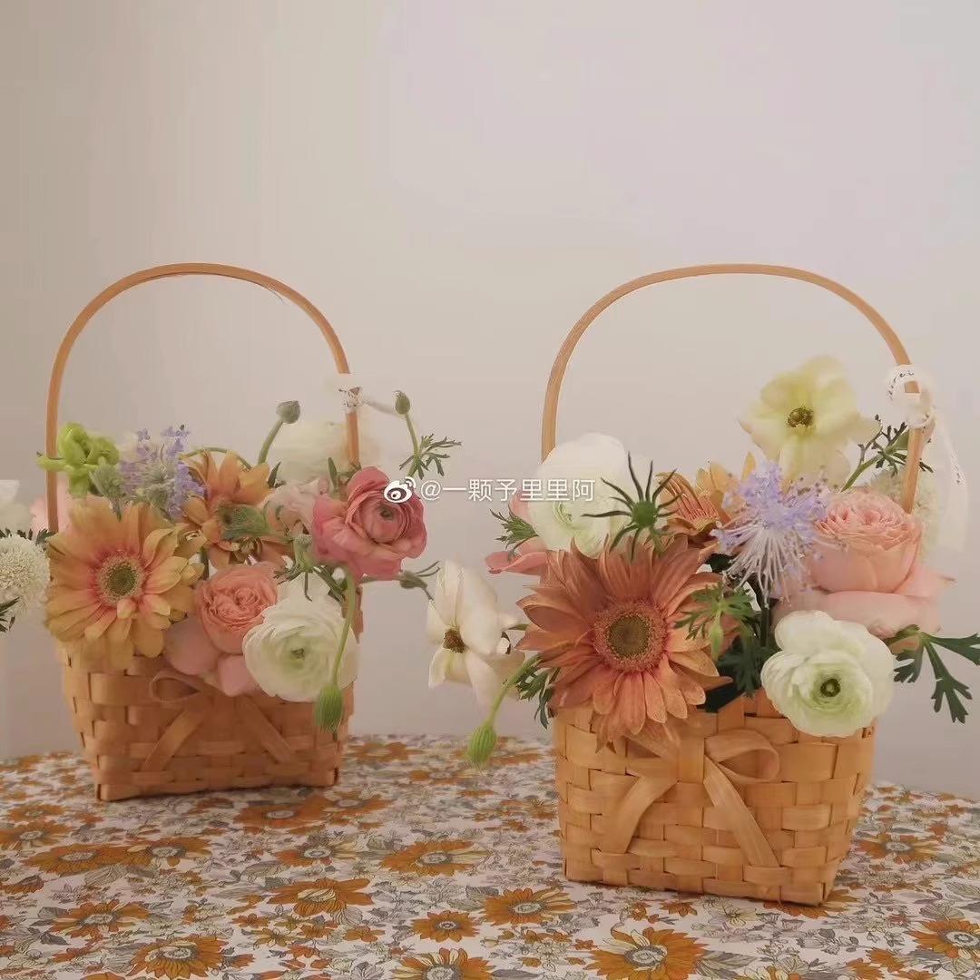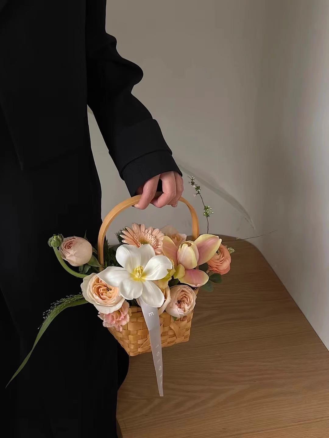 Cesta de flores pequeña y sencilla con lazo de virutas de madera y explosiones de Internet Celebre, cesta de flores portátil, material de arte floral, moda creativa