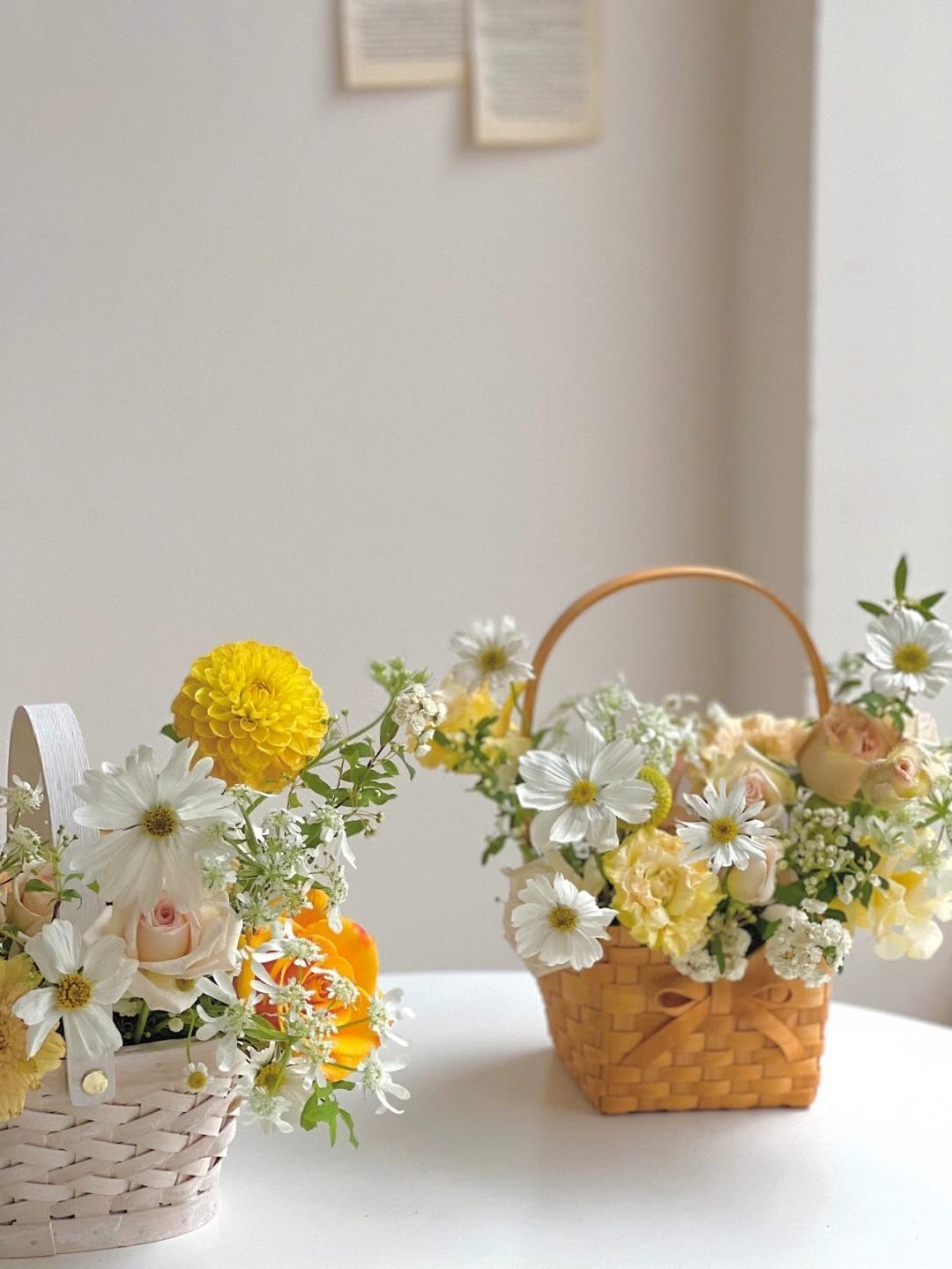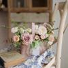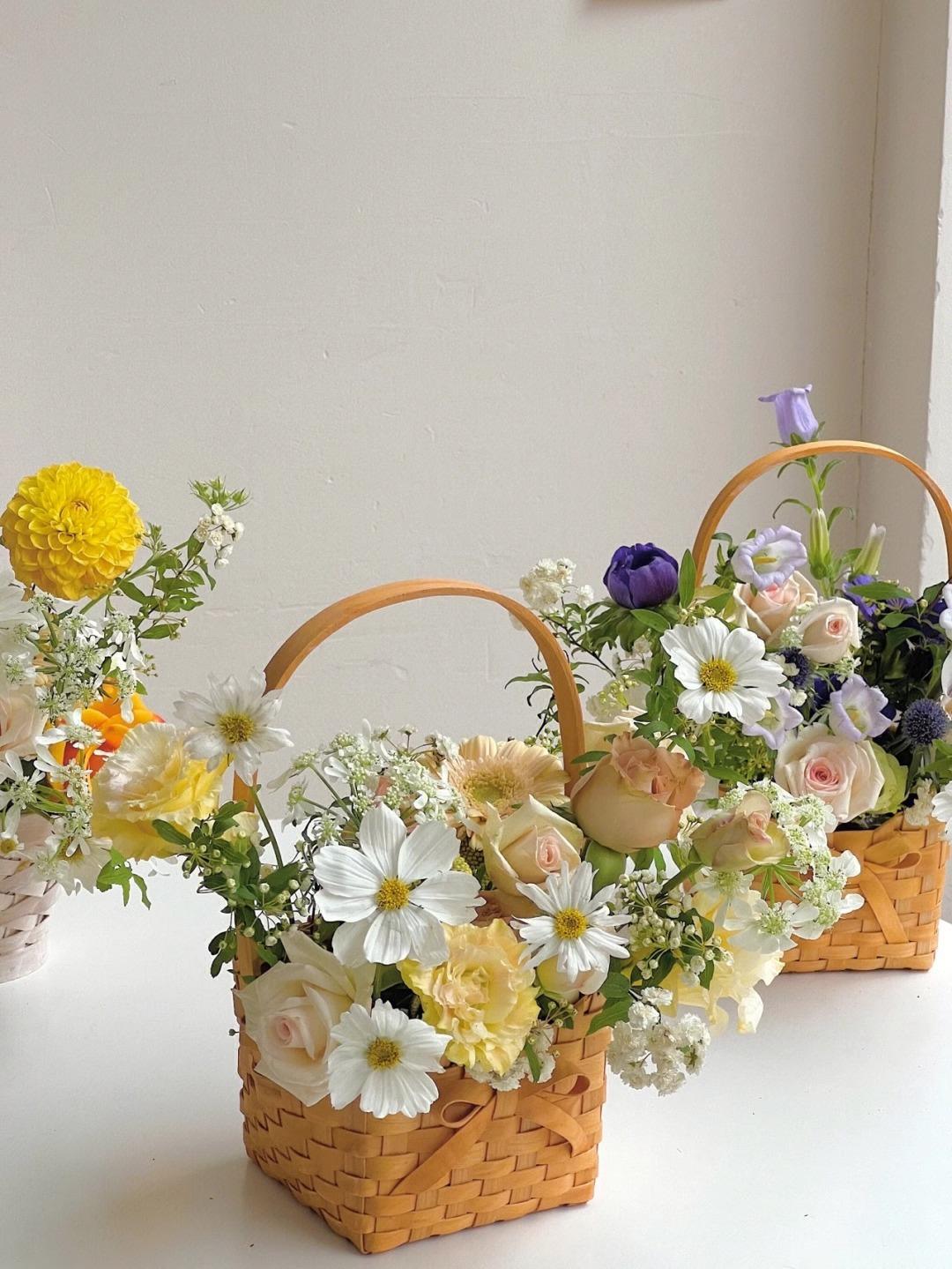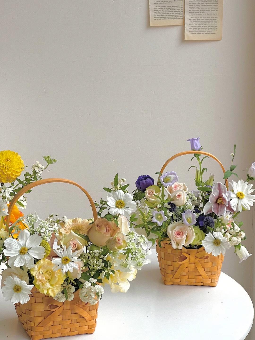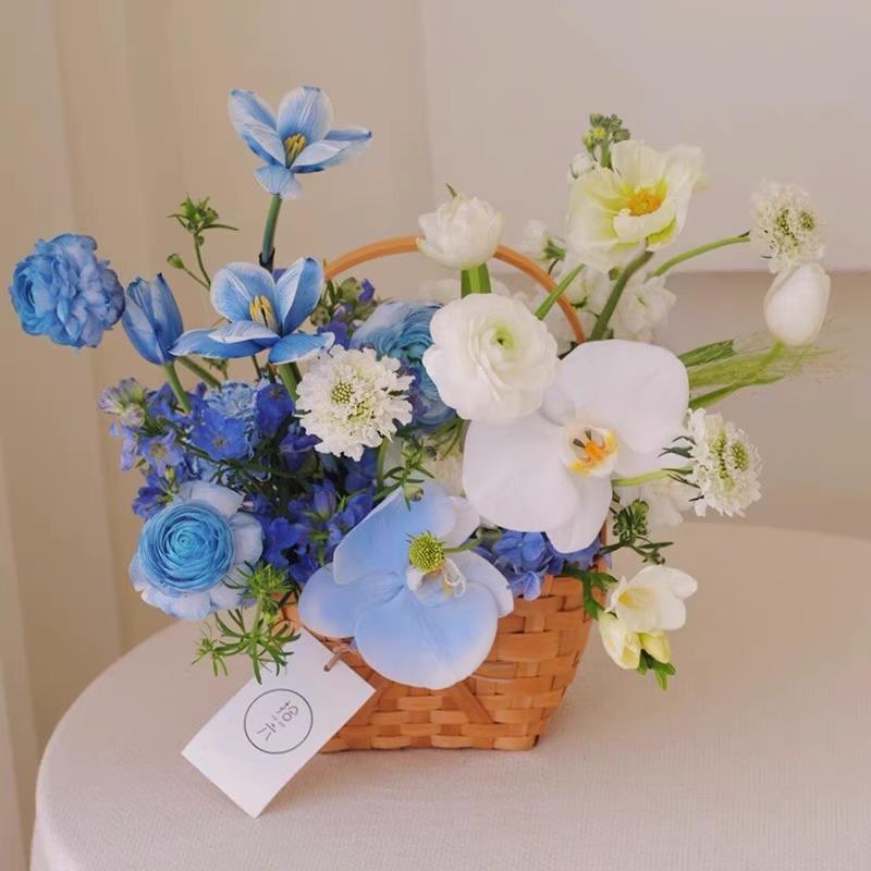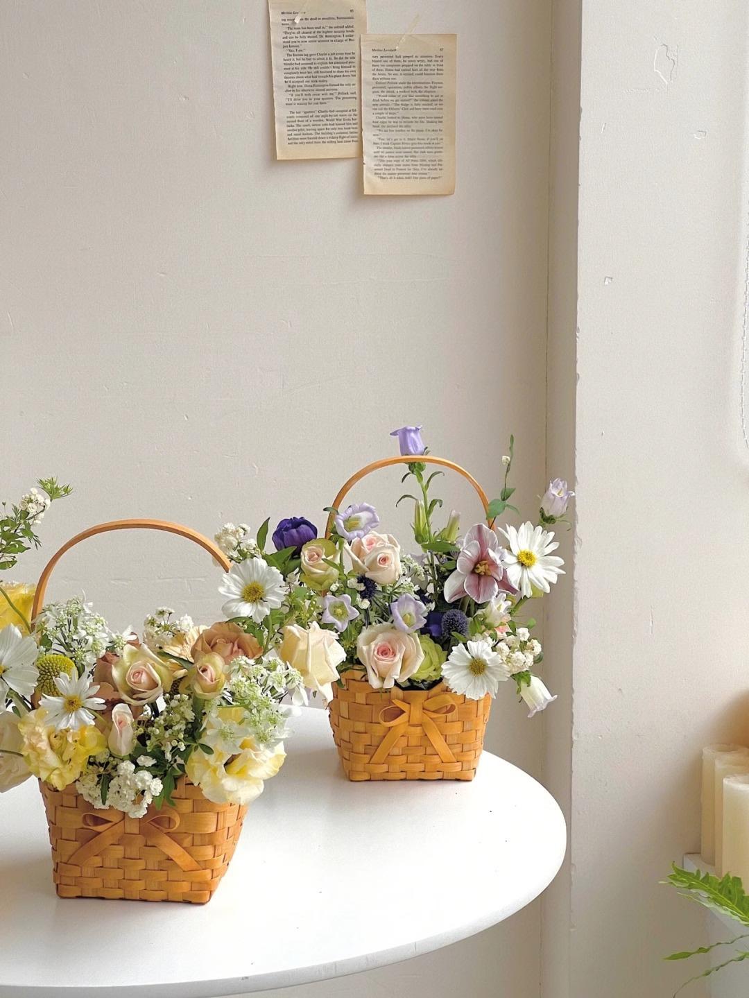 Cesta de flores pequeña y sencilla con lazo de virutas de madera y explosiones de Internet Celebre, cesta de flores portátil, material de arte floral, moda creativa