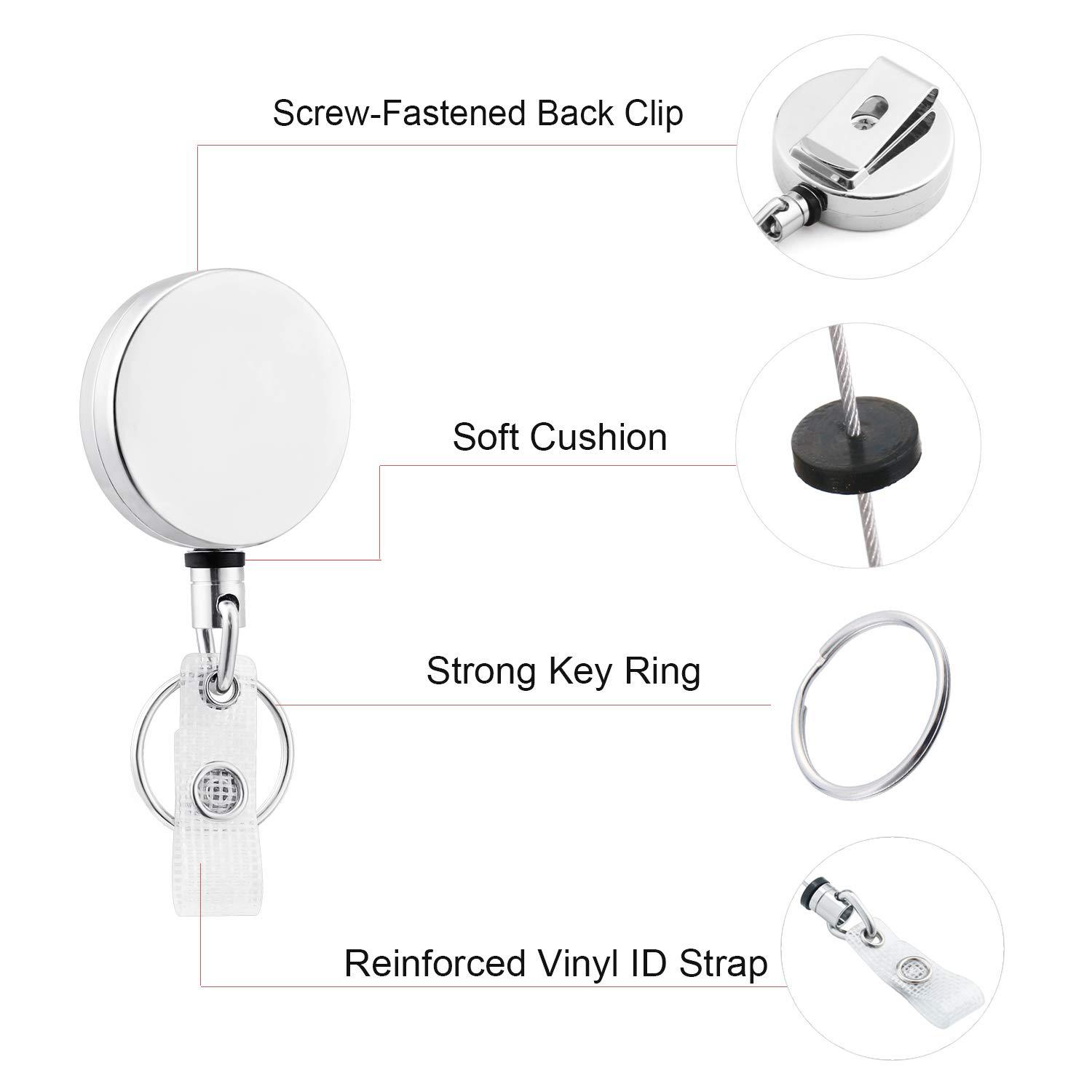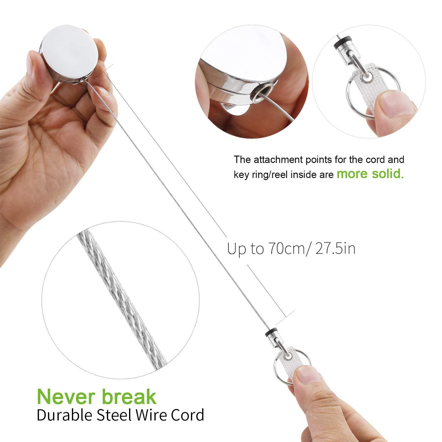 Llavero telescópico con hebilla de identificación fácil de levantar, de metal plateado, de 4 cm de diámetro, de acero inoxidable galvanizado. Hebilla de identificación fácil de levantar.