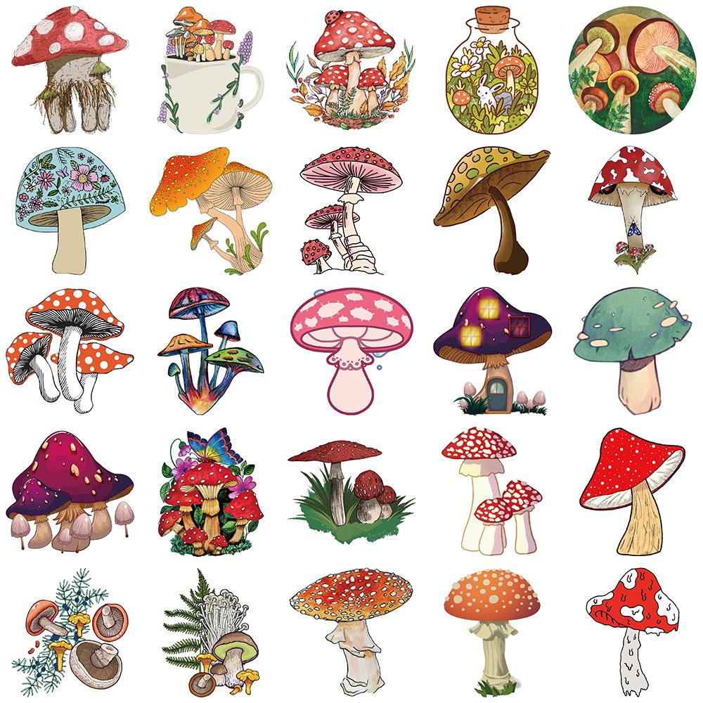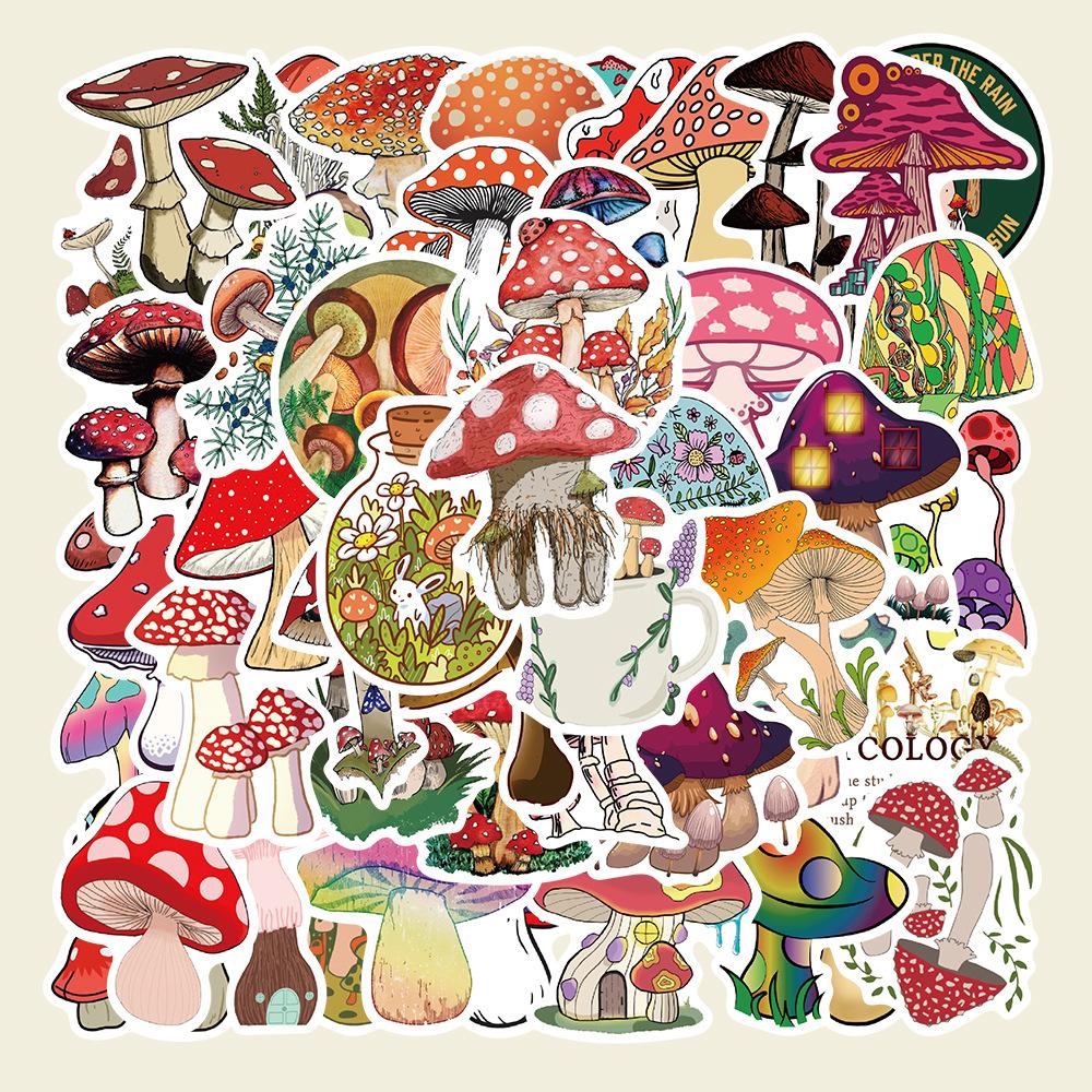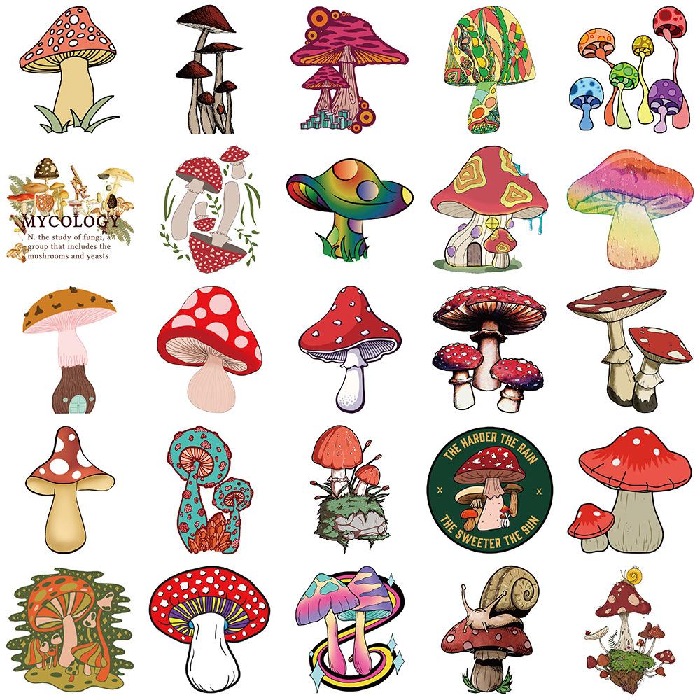 50 pegatinas de hongos de dibujos animados para cuaderno, equipaje, motocicleta, maleta con ruedas, lote de pegatinas decorativas impermeables